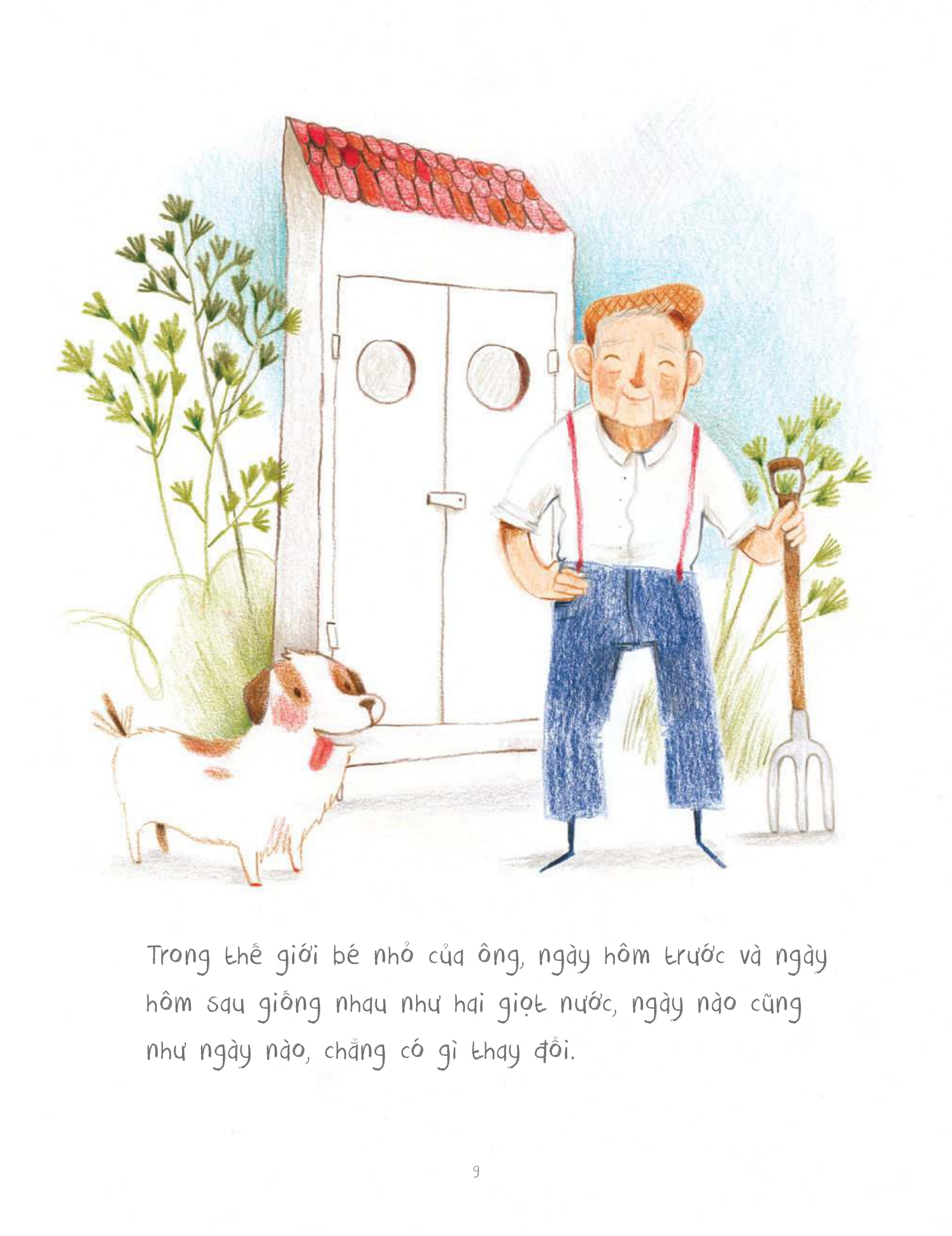 Ngày xửa ngày xưa có một ông cụ sống cùng chú cún tên Lucien trong căn nhà xinh xắn, giữa khu vườn lớn có đến hàng trăm loài hoa. Giờ giấc sinh hoạt của ông vô cùng nghiêm ngặt và bất cứ thay đổi nhỏ nào cũng khiến ông hoảng hốt. Và rồi bỗng một ngày kia…