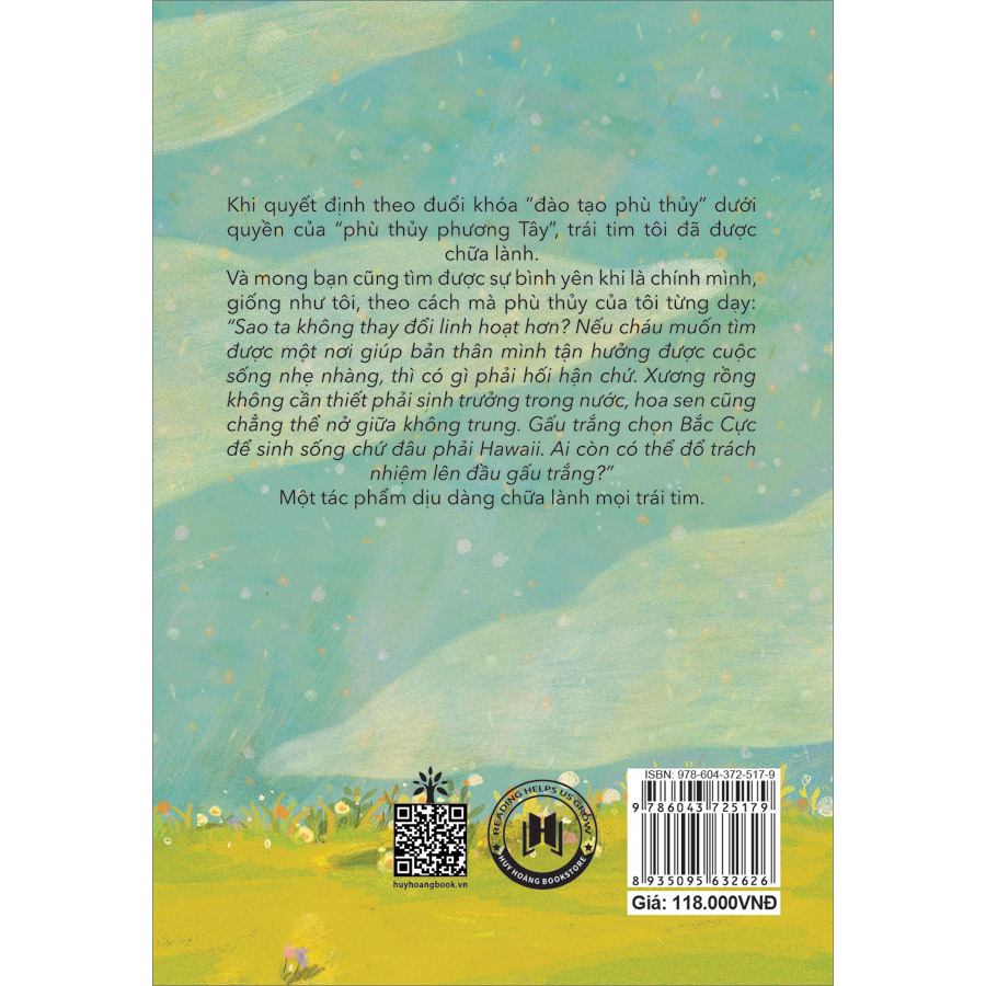 Và mong bạn cũng tìm được sự bình yên khi là chính mình, giống như tôi, theo cách mà phù thủy của tôi từng dạy: "Sao ta không thay đổi linh hoạt hơn? Nếu cháu muốn tìm được một nơi giúp bản thân mình tận hưởng được cuộc sống nhẹ nhàng, thì có gì mà phải hối hận chứ. Xương rồng không cần thiết phải sinh trưởng trong nước, hoa sen cũng chẳng thể nở giữa không trung. Gấu trắng chọn Bắc Cực để sinh sống chứ đâu phải Hawaii. Ai còn có thể đổ trách nhiệm lên đầu gấu trắng?"