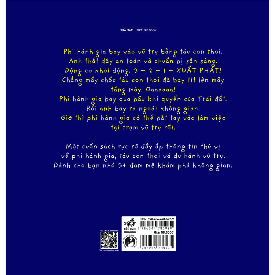 Nội dung đơn giản, dễ hiểu: Ngôn ngữ được sử dụng trong sách rất phù hợp với lứa tuổi 3+, giúp bé dễ dàng tiếp thu những kiến thức cơ bản về phi hành gia và tàu con thoi.