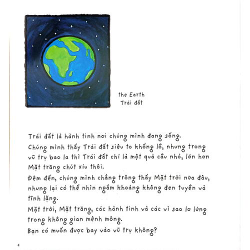 Hình ảnh sinh động, màu sắc tươi tắn: Những bức tranh minh họa trong sách chắc chắn sẽ thu hút sự chú ý của bé, giúp bé hình dung rõ hơn về quá trình một phi hành gia lên vũ trụ.