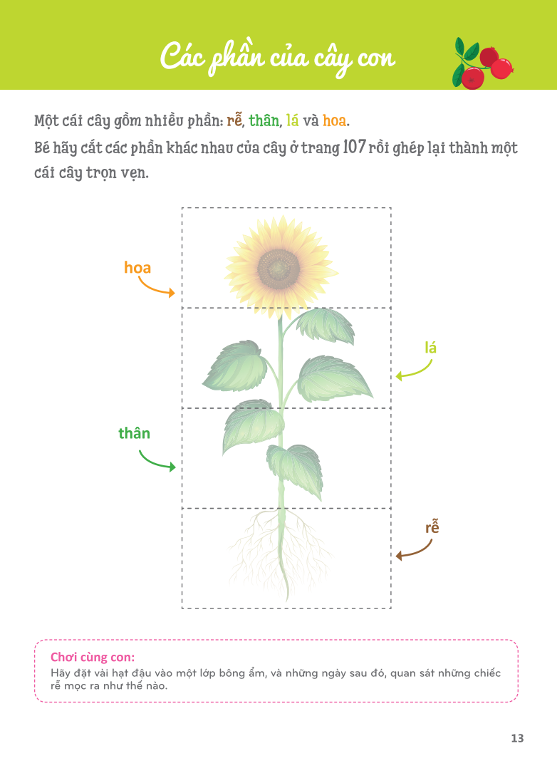 Các hoạt động dựa trên những nguyên tắc cơ bản của phương pháp giáo dục Montessori; kèm theo những tấm thẻ cắt ra để dán hoặc ghép: hình động vật và thực vật, miếng ghép,