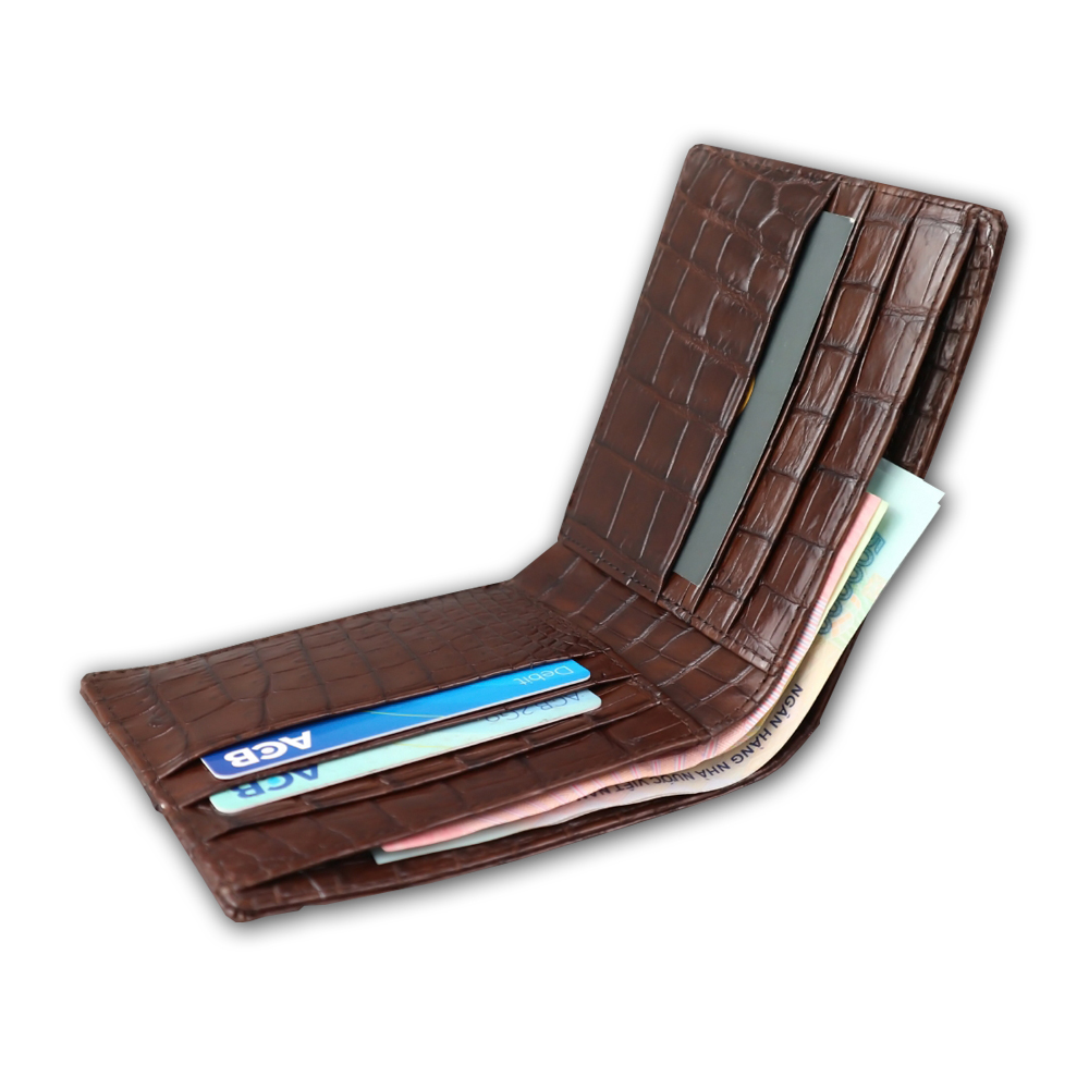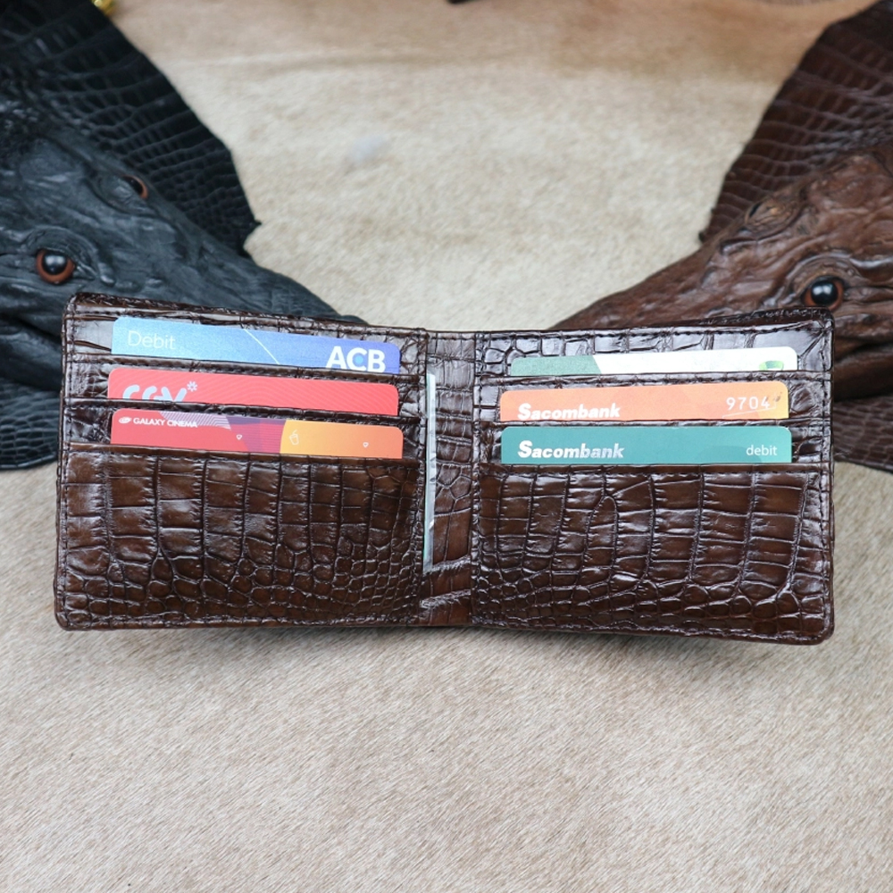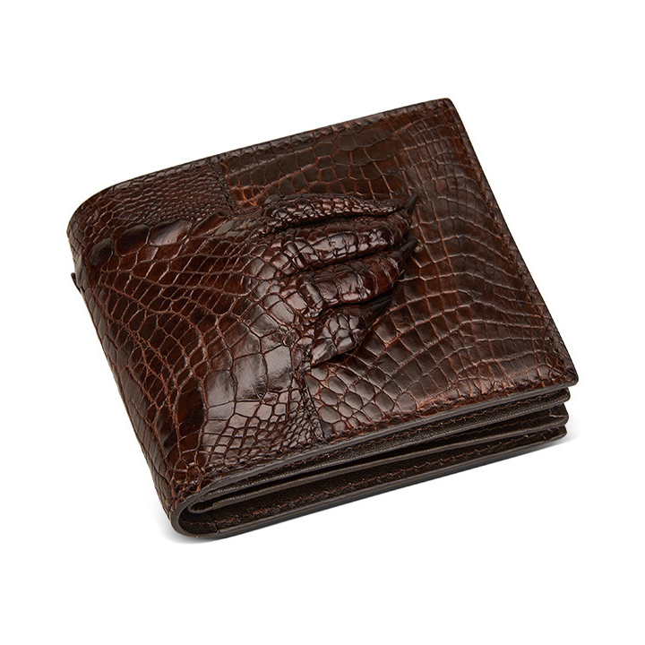 Bóp Da Cá Sấu 2 Mặt Bàn Tay Cá Sấu Màu Nâu - Ví Nam Da Cá Sấu 2 Mặt Có Khoá Kéo Cao Cấp Dáng Ngang Thời Trang