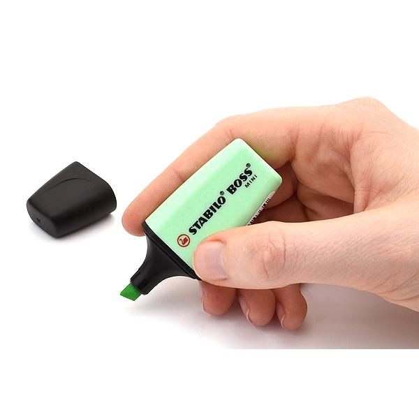 Dạ Quang Boss Mini Xanh Lá Phấn HLP07-116 là bút highlighter sản xuất tại Đức - Mẫu mã mới, phong cách và thời trang. - Hình dạng dễ thương, vui nhộn và phá cách, nhỏ gọn cực kì tiện lợi khi bỏ trong túi - Đường rãnh trên nắp giúp dễ dàng mở nắp - Thân bút thiết kế kín chặt chẽ ngăn chặn hoàn toàn không khí có thể vào trong mực, không cho mực bay hơi và bị rò rỉ - Âm thanh khi lắp nắp cho biết nắp được đậy kín đúng cách - Bút highlighter pastel có 2 chiều rộng (2 + 5mm) để gạch dưới chính xác - Bộ dạ quang tông màu pastel mềm mại dịu dàng giúp tâm trạng được thư giãn