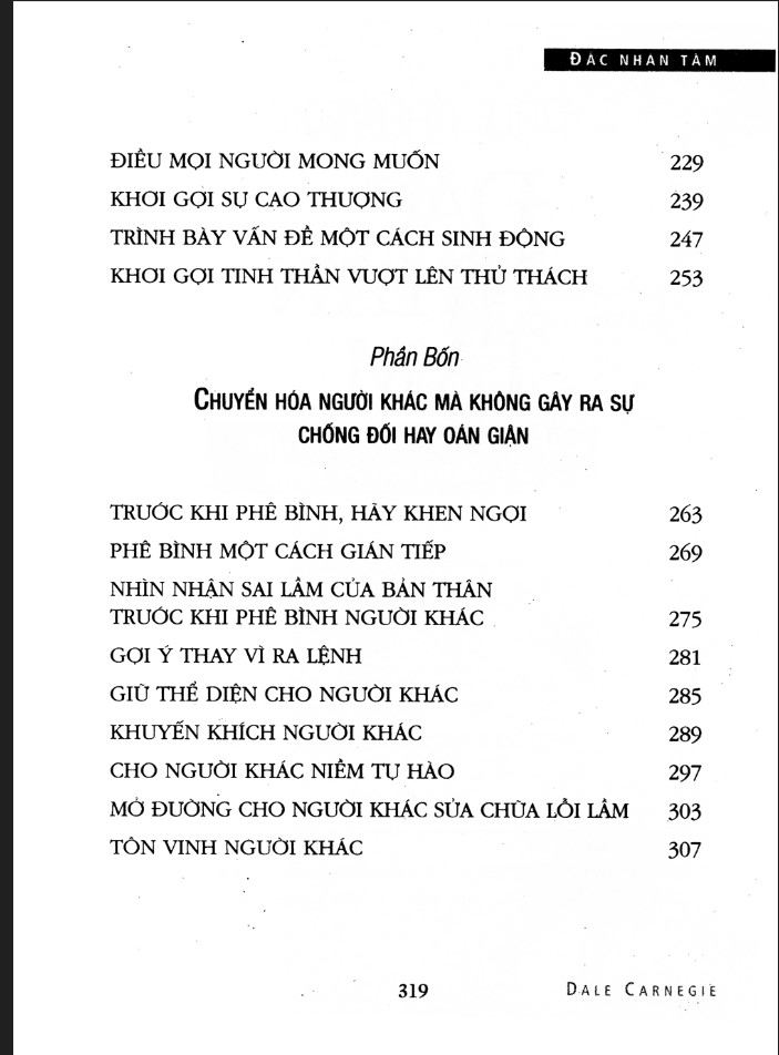 Cuốn sách Đắc Nhân Tâm được chia ra làm 4 nội dung chính và mỗi phần cũng là một bài học về cuộc sống.