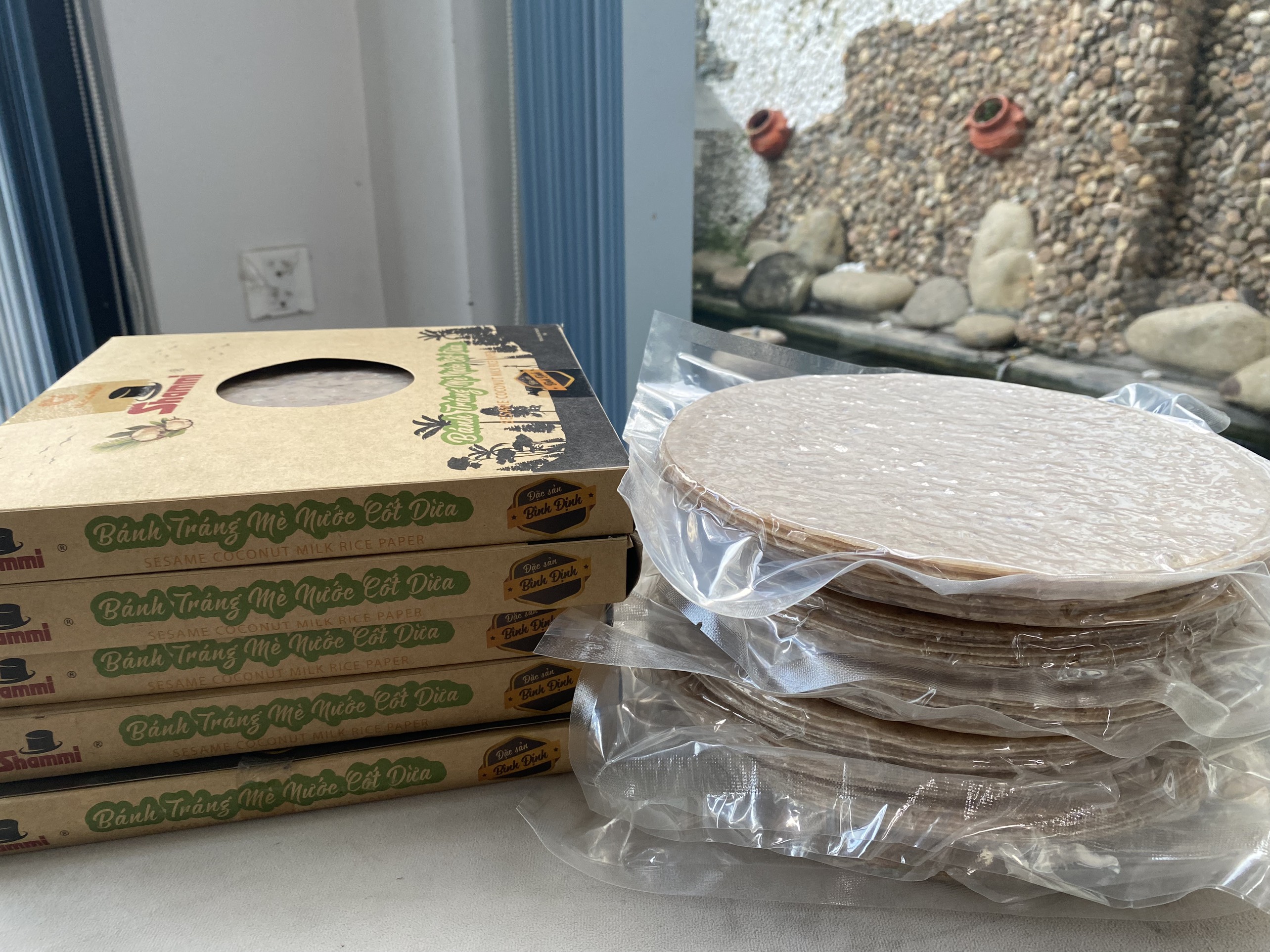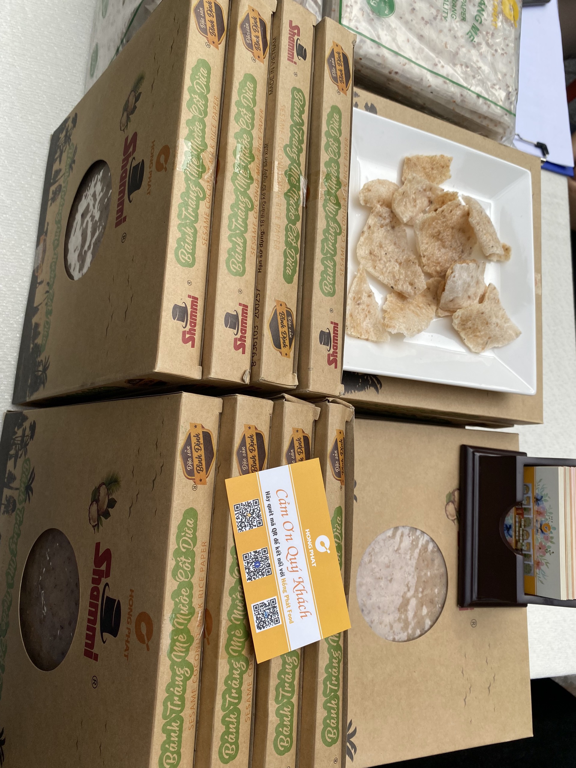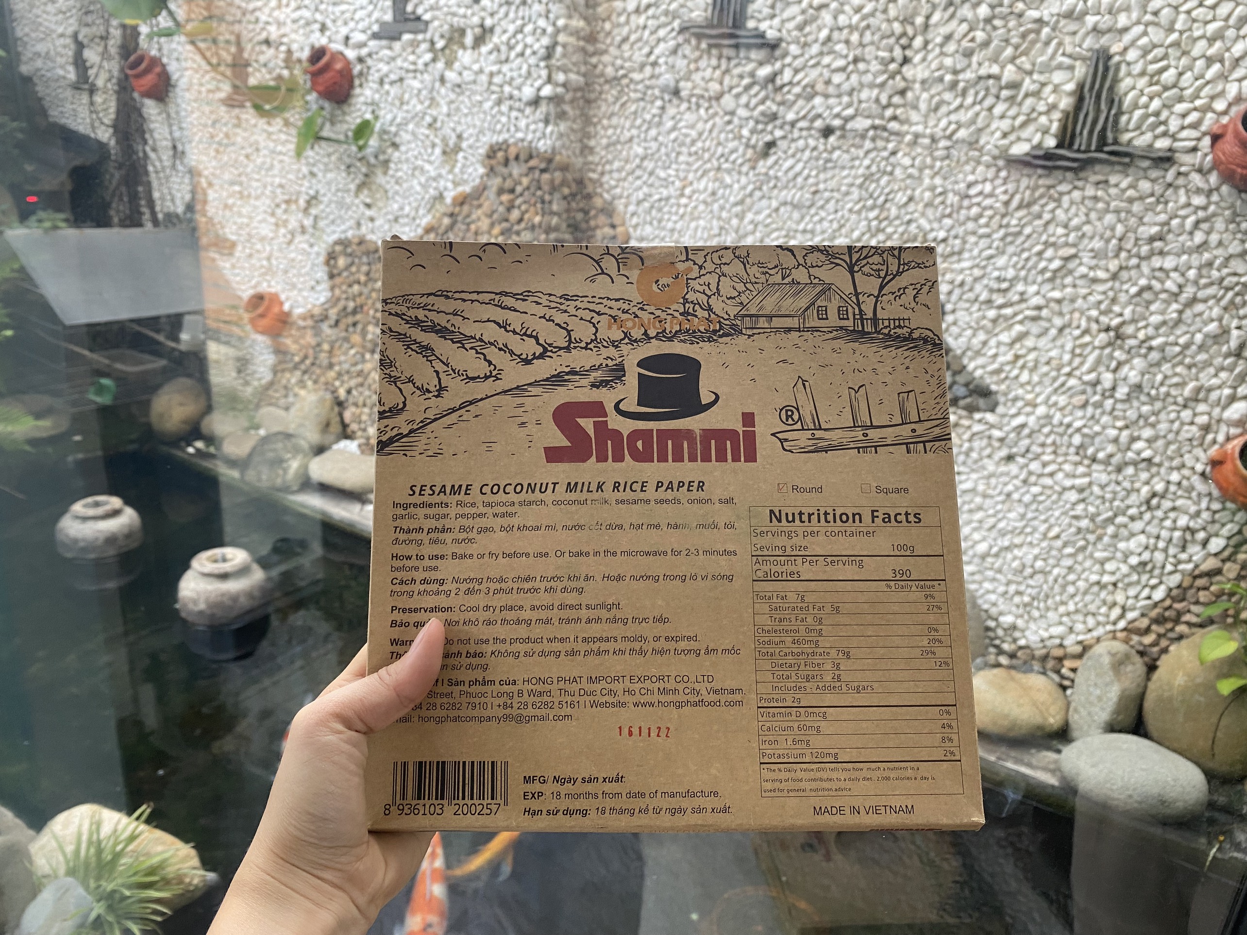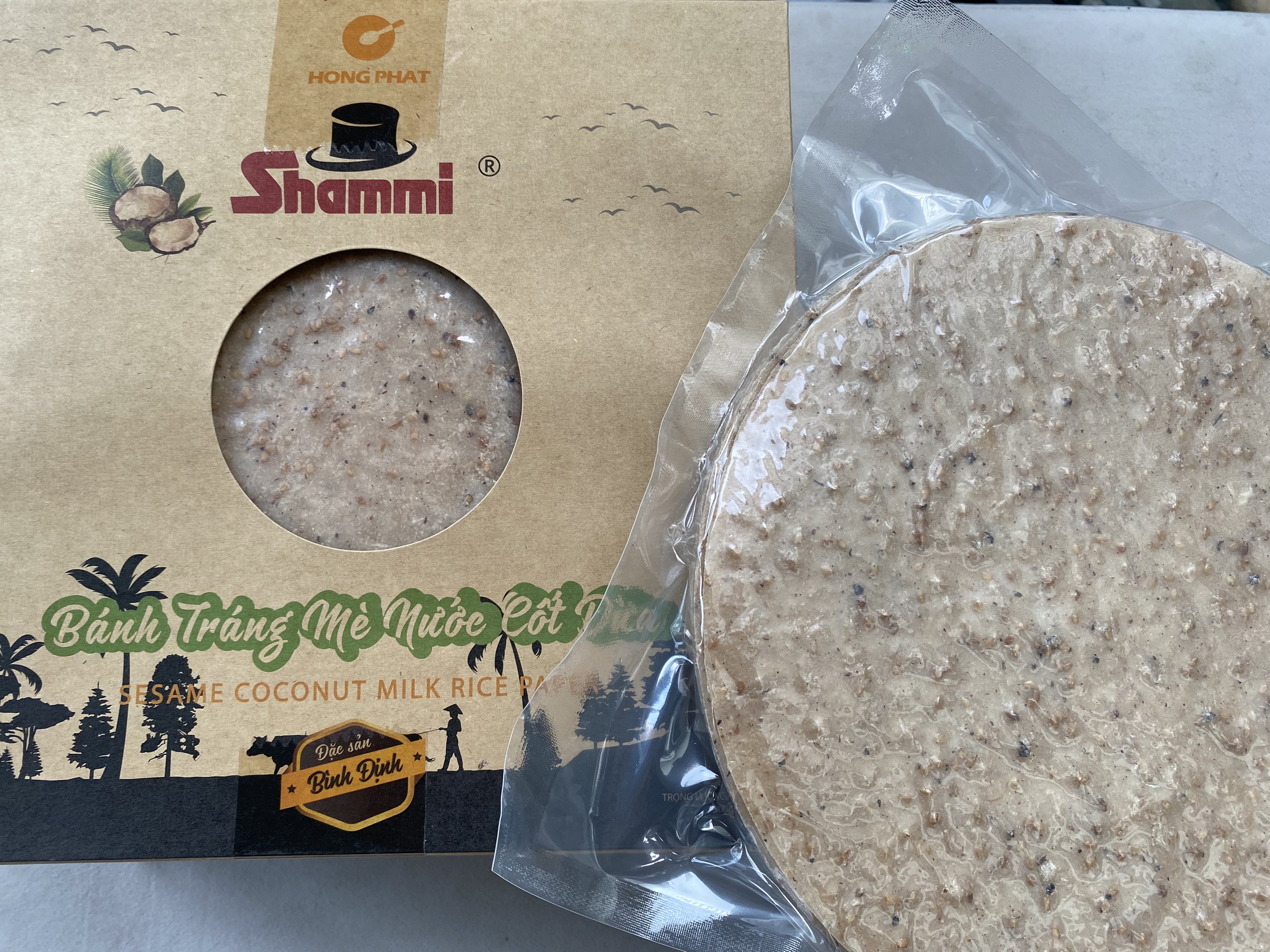 Mua tại TiktokBánh tráng nước cốt dừa Bình Định chắc hẳn không còn xa lạ với người dân miền Trung .Với mong muốn giới thiệu đặc sản này đến bạn bè cả nước cũng như trên thế giới Công Ty chúng tôi đã tạo nên sản phẩm : BÁNH TRÁNG MÈ NƯỚC CỐT DỪA SHAMMI. Thành phần gồm Bột mì ,Bột gạo , nước cốt dừa , mè , hành , muối ,tỏi ,đường ,nước ản phẩm dùng để nướng hoặc chiên trước khi ăn. Hoặc nướng trong lò vi sóng trong khoảng 2 phút trước khi dùng. Thời hạn sử dụng : 18 tháng kể từ ngày sản xuất . NSX và HSD in trực tiếp trên bao bì .