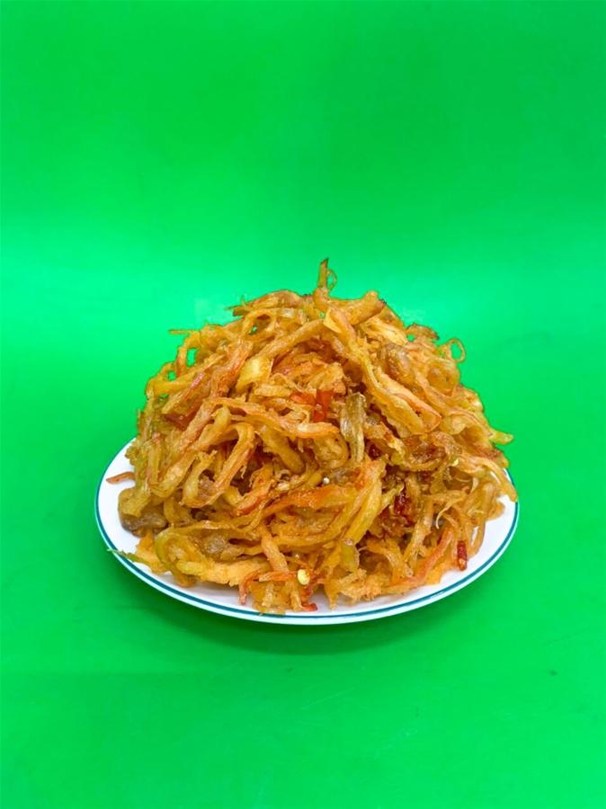Thành phần: 90% mực khô xé sợi, 2% ớt, 8% gia vị (đường, muối, chất điều vị mononatri L-glutamat 621, hạt nêm Hạn sử dụng: 6 tháng kể từ ngày sản xuất Hướng dẫn sử