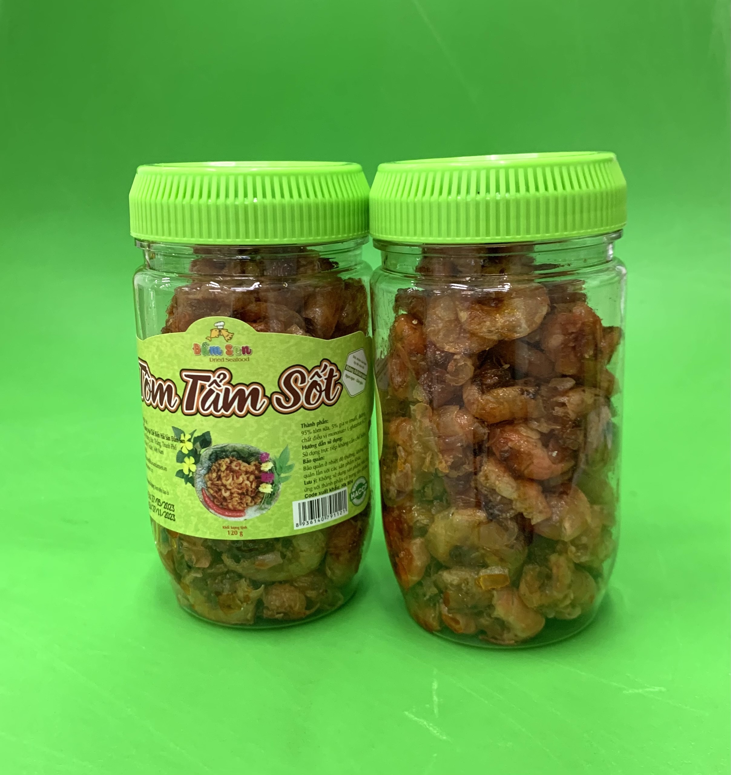 Thành phần: 85% tôm, 10% rau củ quả (lá chanh, đu đủ, cà rốt), 5% gia vị (đường, muối, chất điều vị mononatri L-glutamat 621, dầu ăn) Hạn sử dụng: 9 tháng kể từ ngày