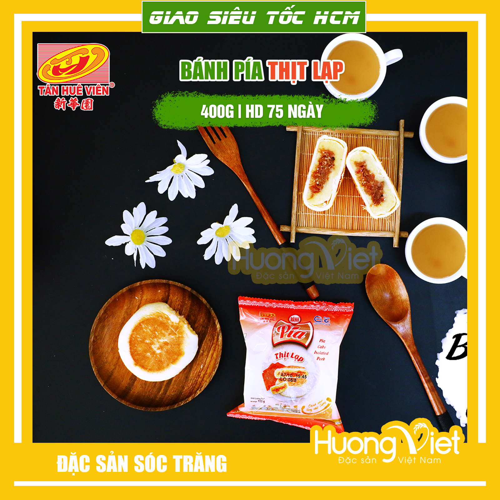 Là một trong những thương hiệu đi đầu về các món lạp xưởng và bánh Pía. Nay Tân Huê Viên lại tạo nên sự đột phá trong lĩnh vực Bánh Pía bằng việc khéo léo đưa các món đặc sản này kết hợp với nhau. Bánh Pía Thịt Lạp là sự kết hợp giữa Bánh Pía Đậu Xanh và món Thịt Lạp tươi ngon. Đã tạo ra được một chiếc bánh với hương vị độc đáo, lạ miệng.