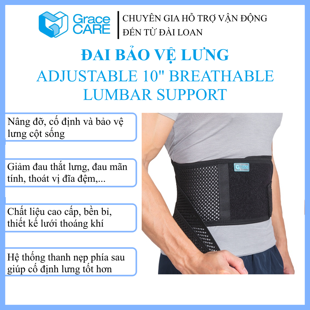 ✨Đai Bảo Vệ Lưng Grace Care LB223 (Bản Cao ~25cm) - Vải Lưới, Thoáng Khí, Giảm Đau, Thoát Vị Đĩa Đệm
