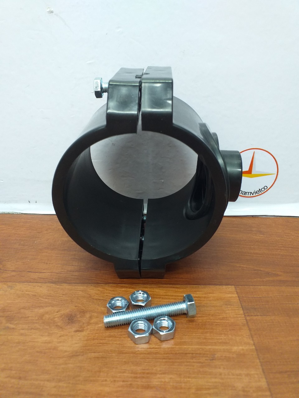 - Lắp đai lên vị trí đặt trên thành ống, đảm bảo quay đầu ren của đai hướng vào ống cần nối.