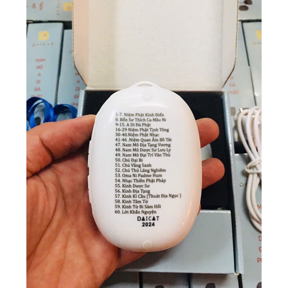 -Máy có sẵn 60 bài niệm Phật (nội dung in trên mặt sau máy)