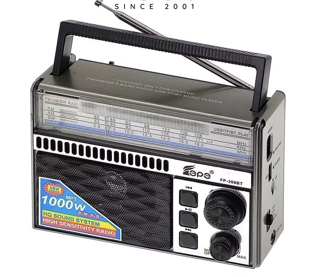 - 3 Băng FM , AM , SW - Bluetooth 5.0 , Phát nhạc từ USB hoặc thẻ nhớ TF Card - Sử dụng điện trực tiếp 220V hoặc pin sạc dung lượng lớn kèm