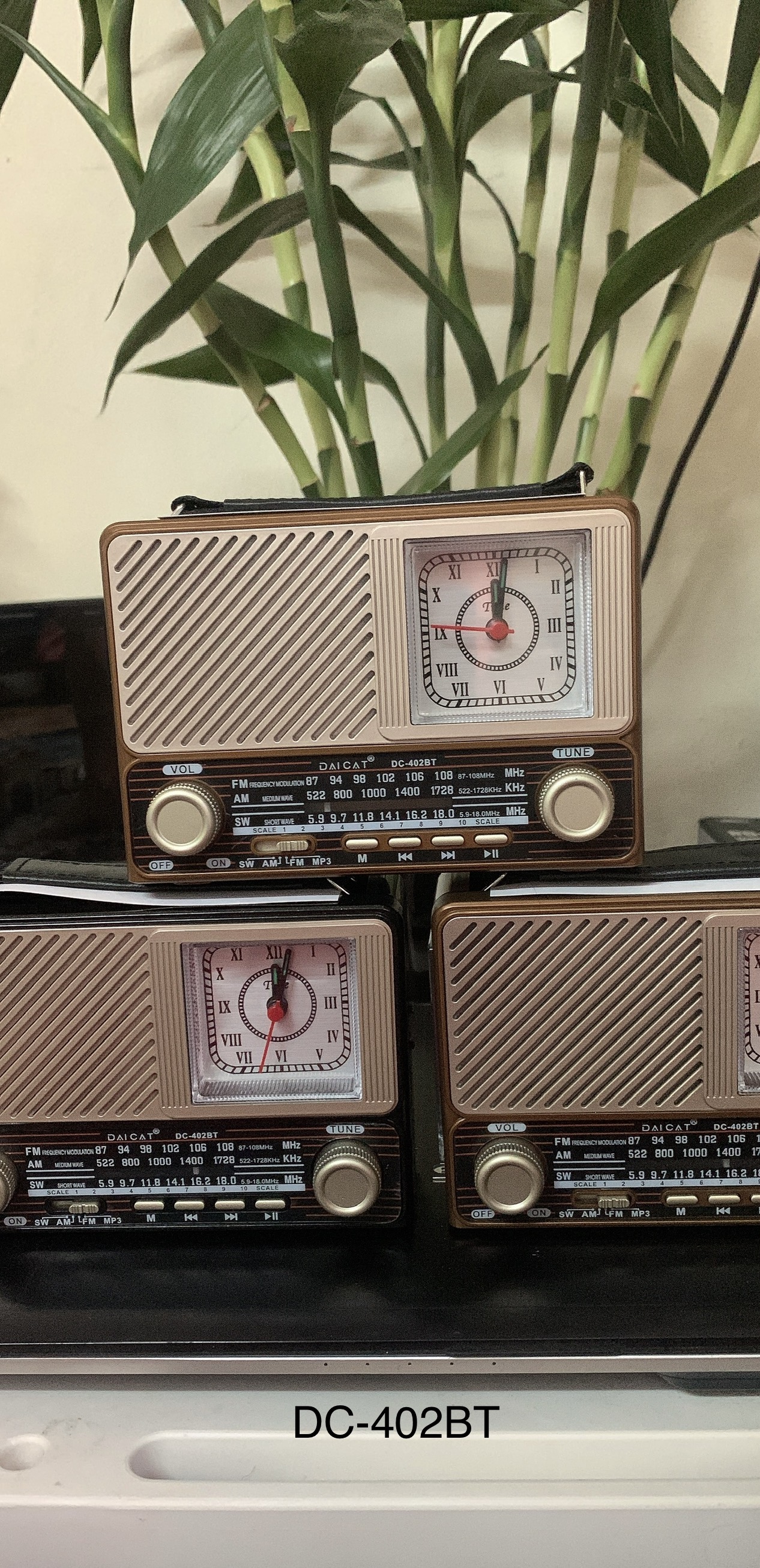Sóng : AM : 530-1600 KHz – FM : 88-108 Mhz – SW : 8-16 MHz Có tích điện bên trong hoặc có thể sử dụng với 2 pin đại . -Đặc biệt WAXIBA XB-401C có kết hợp đồng hồ , khả năng bắt sóng tốt, âm thanh lớn rõ ràng , -kích thước trung bình 17510 52mm kèm dây đeo có thể đem theo người.