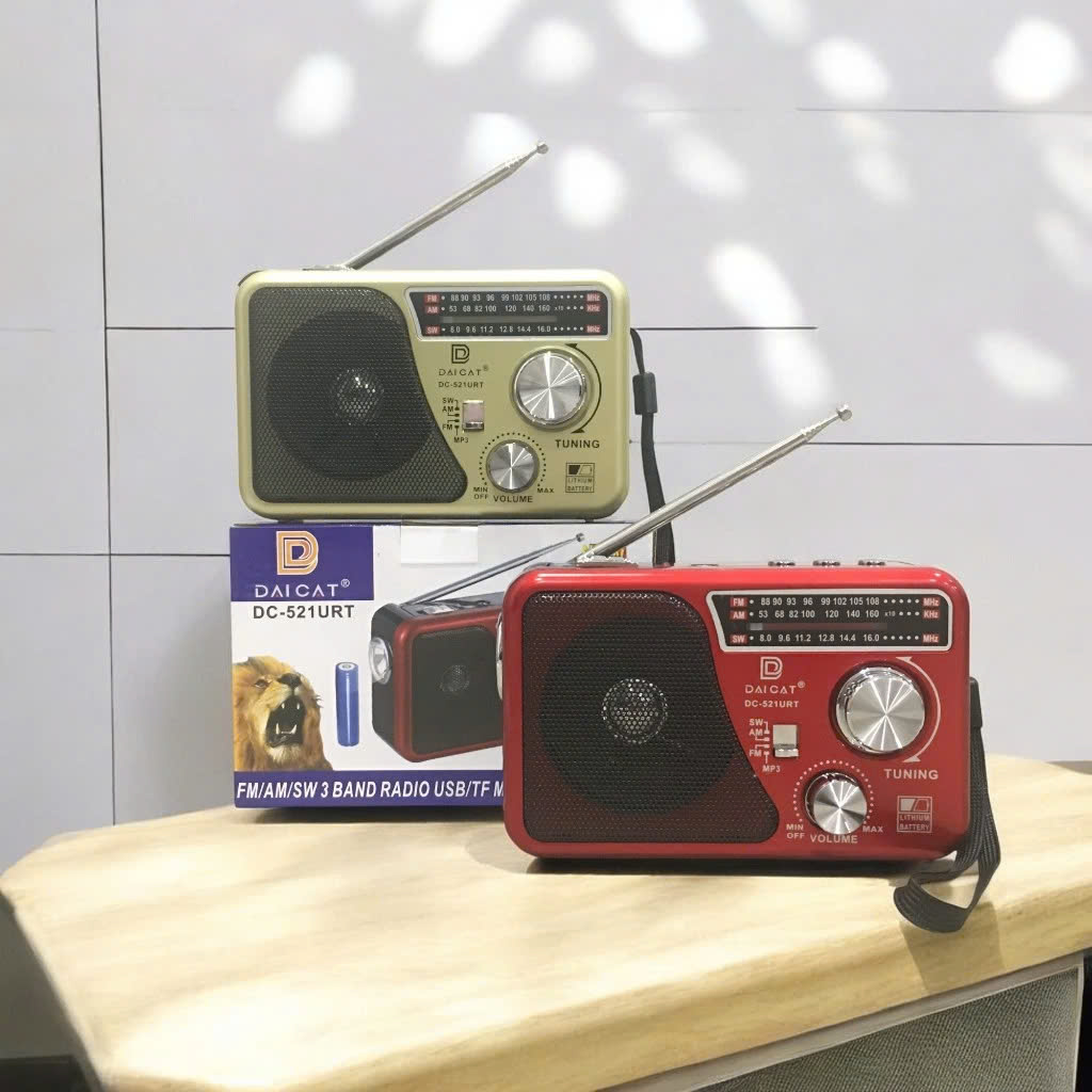 Đài Radio FM DAICAT DC-521URT - Loa nghe nhạc DC-521URT Hỗ Trợ USB, Thẻ nhớ, Chạy Pin và Điện 5V