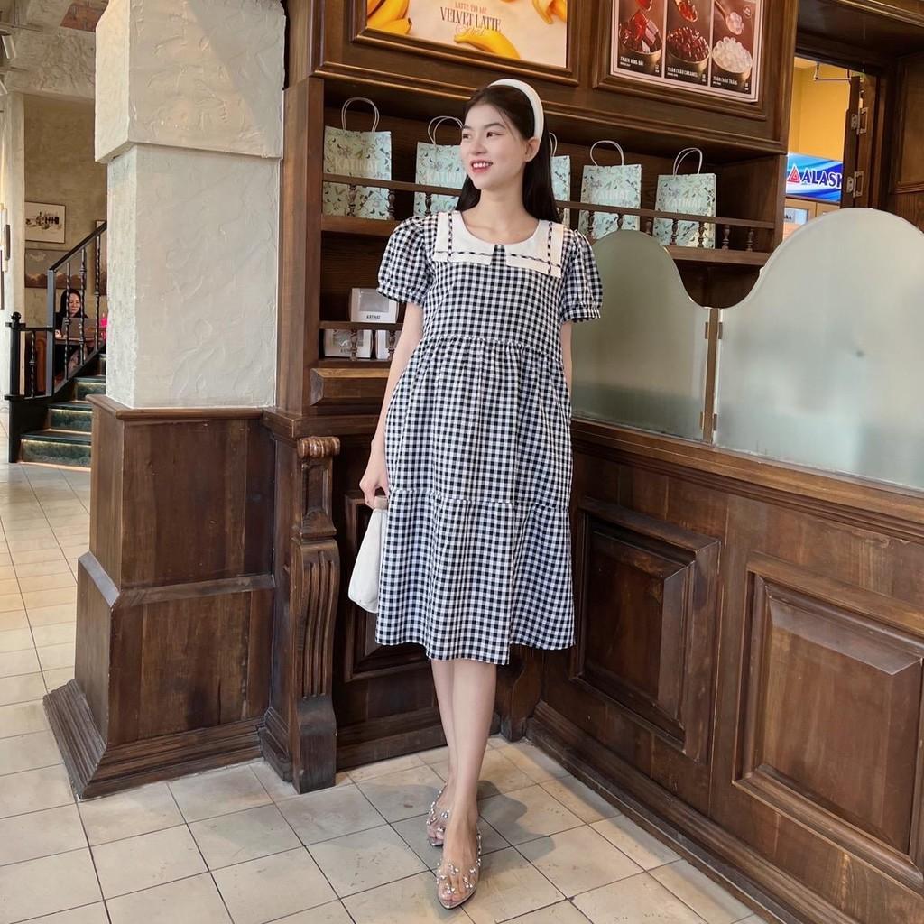 ÔNG TIN SẢN PHẨM: Đầm bầu karo cổ thuỷ thủ phom babydol năng động, trẻ trung. Chất vải cotton hàn nhẹ mát, thấm hút mồ hôi. Điểm nhấn tay phồng nhẹ dễ thương khi mặc ạ. Đầm thiết kế c...
