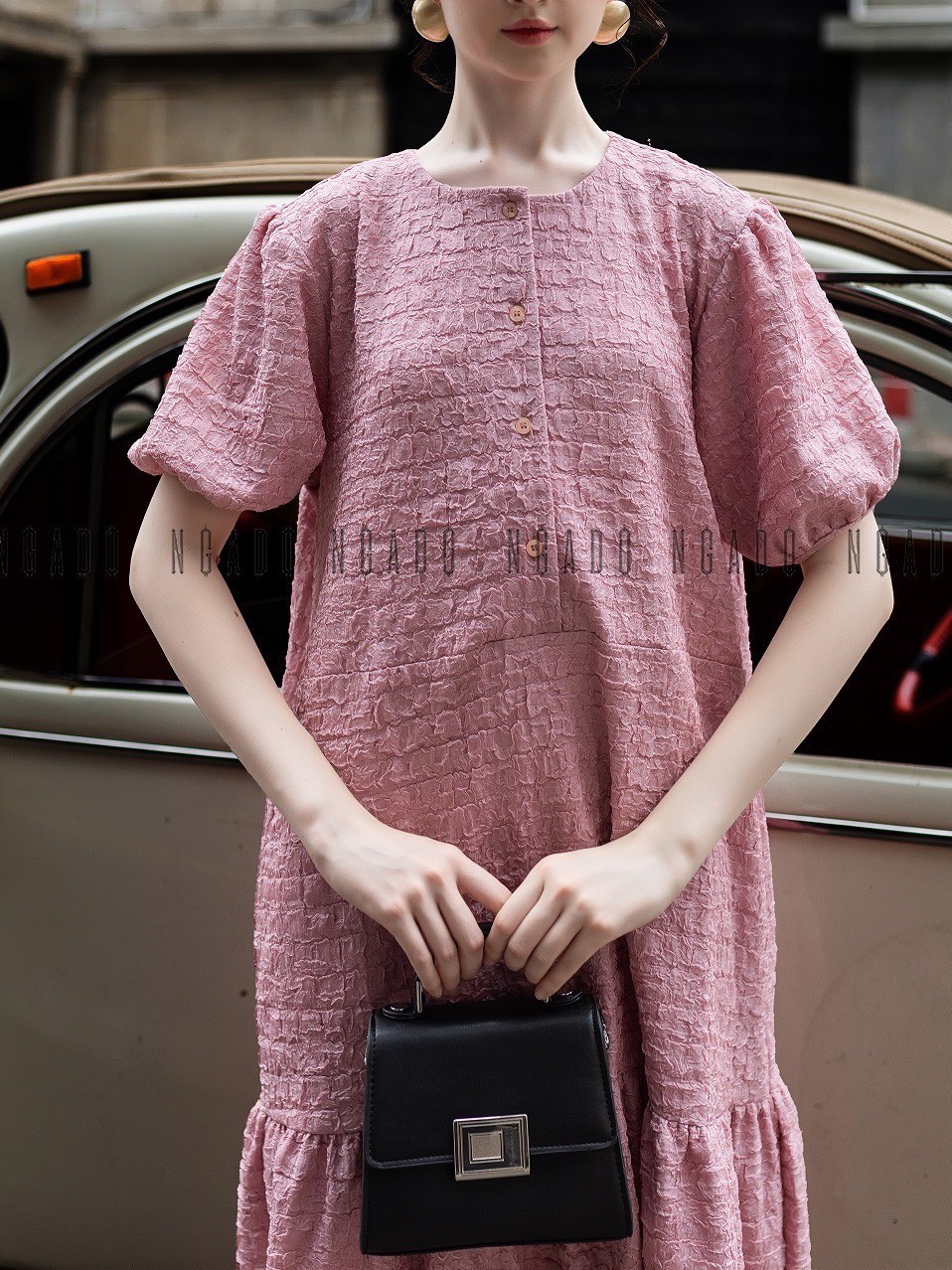 ღ THÔNG TIN SẢN PHẨM: Tên sản phẩm: Đầm hồng sen tay loe Chất liệu: gân ý Chi tiết sản phẩm: không lót, không túi Thông số size: S, M, L,