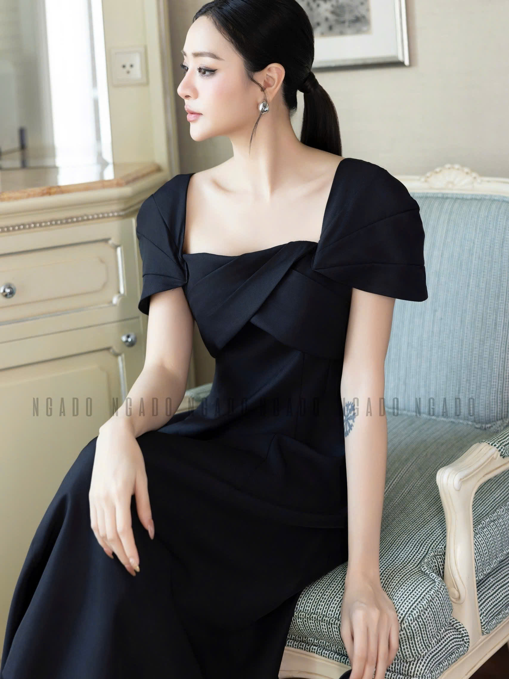ღ THÔNG TIN SẢN PHẨM: Tên sản phẩm: Đầm đen cổ vuông Màu sắc: Đen Chất liệu: Chất gấm trơn dày Chi tiết sản phẩm: không lót, không túi. Thông
