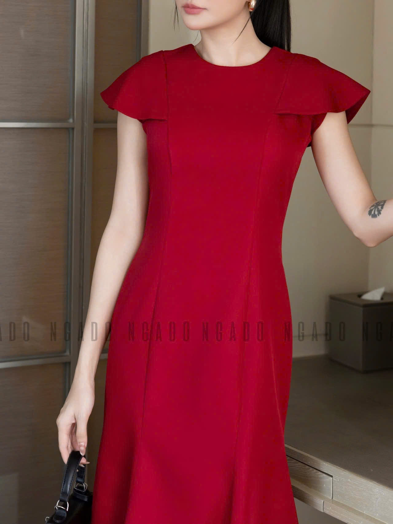 ✨Đầm đỏ đuôi cá ngắn tay NGADO , đầm nữ , Đầm dự tiệc sang chảnh