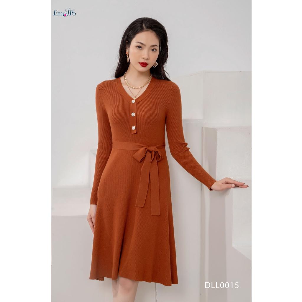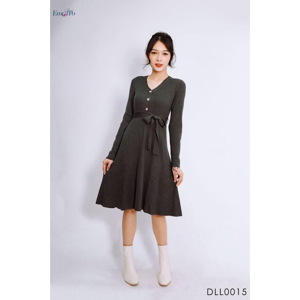 ̂ ̉ Đầm len cổ tim dáng xòe có đai Emspo DLL0015