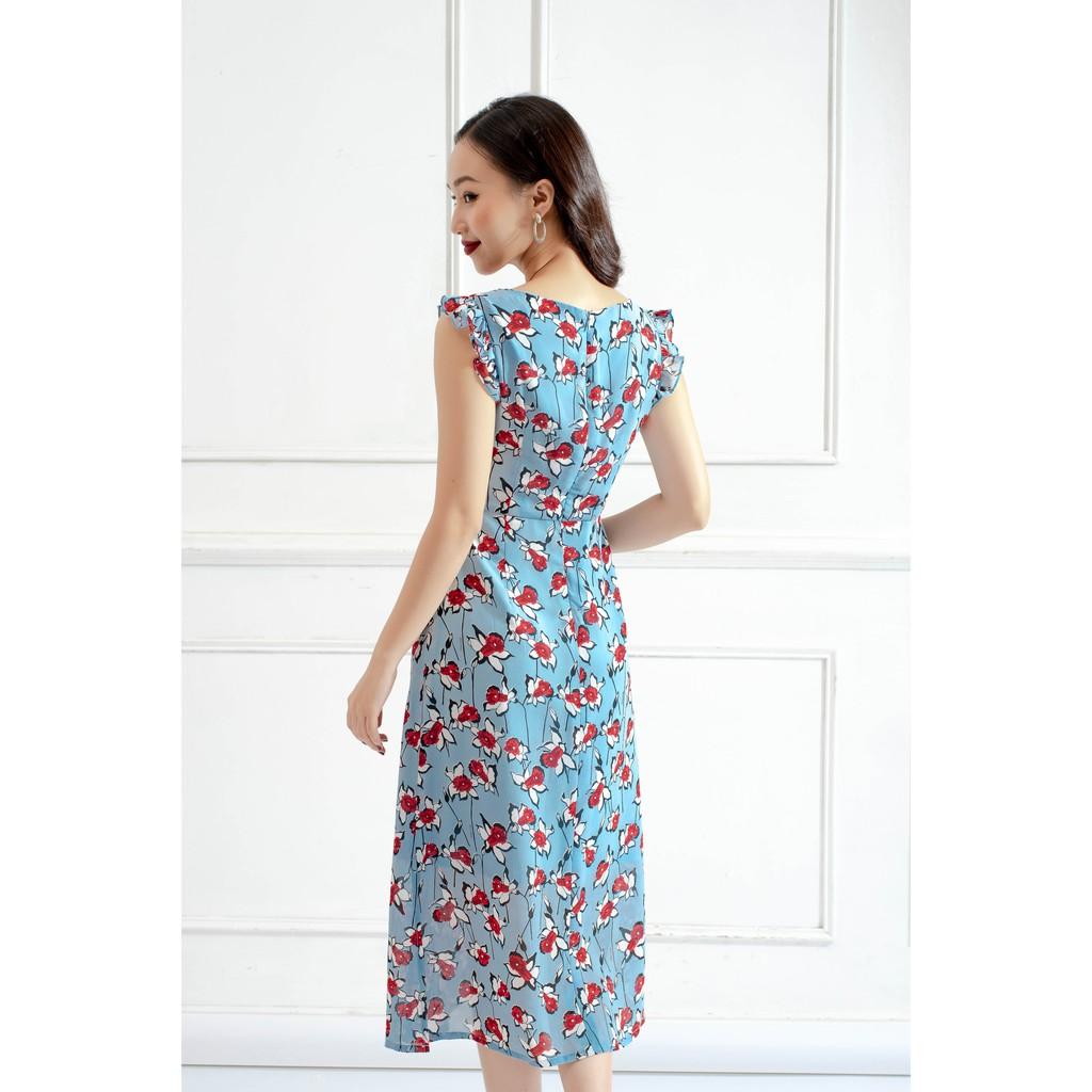 ✨Đầm maxi hoa xanh Tri'C Luxury bèo tay xẻ gấu Xanh Blue A17520