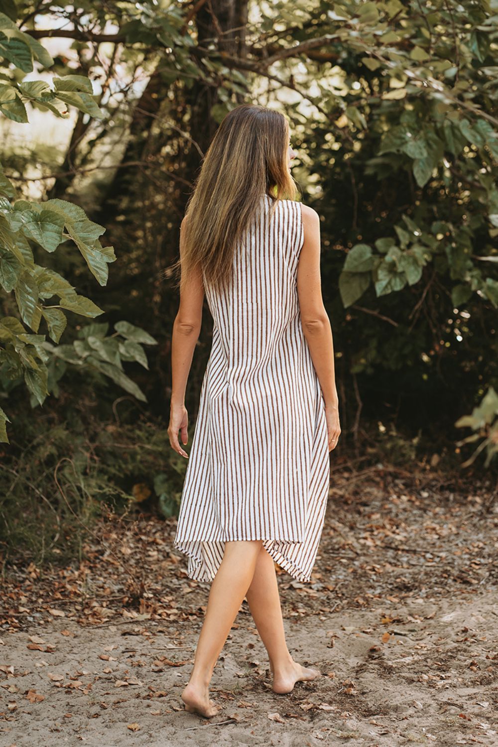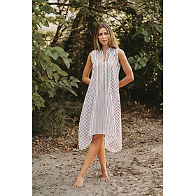 Đầm Midi Sọc Thêu Kết Hạt Cotton Isla Bonita, chất liệu cotton mềm mại, nổi bật phần ngực thêu tay và kết hạt nhẹ nhàng. Có túi 2 bên. Phom suông. Dài đầm thân trước