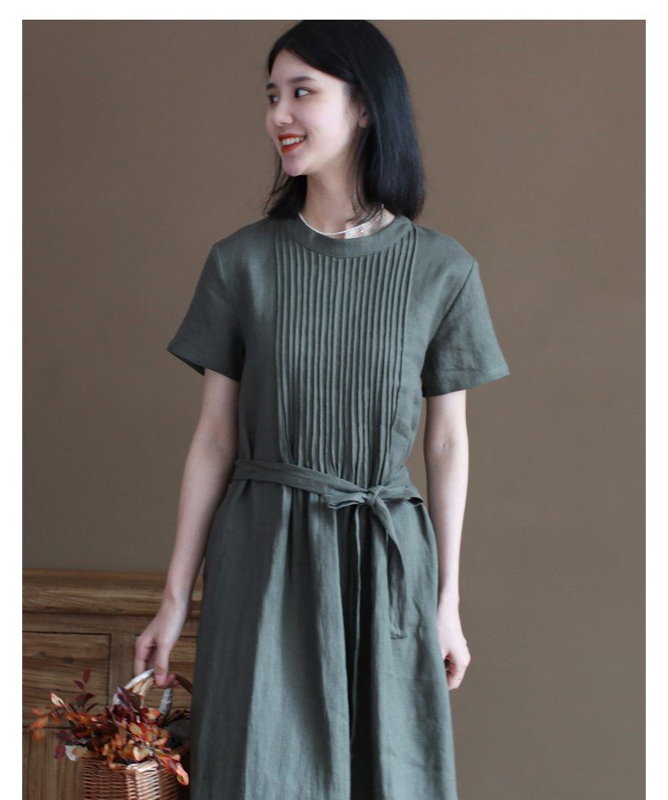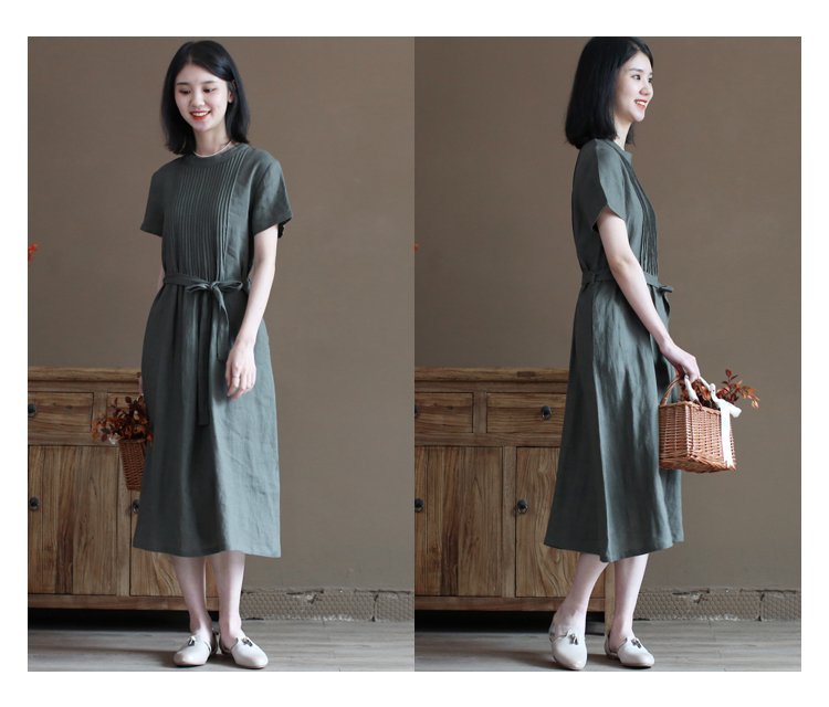 ✨Đầm ngắn tay chất liệu linen cao cấp, dáng suông basic dễ mặc, phong cách kín đáo nhã nhặn NH191 xanh xám
