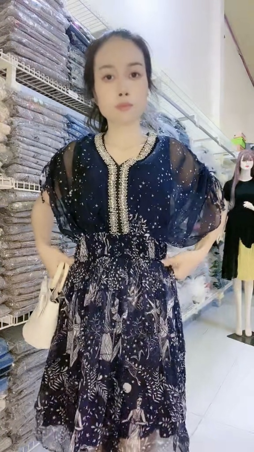 Đầm tay dơi kèm hạt đính thời trang cao cấpMã: DLAG0001Màu: XanhChất liệu: Lụa/polyesterSố đo vòng1/vòng2(cm): 85 giãn nhẹ/eo chun đàn hồi