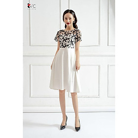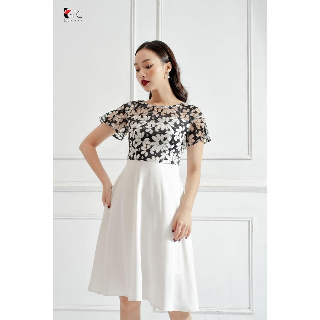 ✨Đầm ren xòe Tri'C Luxury họa tiết phối Trắng A13219-T