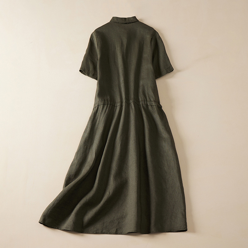 ✨Đầm sơ mi ulzzang suông nữ, Đầm linen thời trang hè nữ kèm đai eo màu xanh rêu Haint Boutique HB75