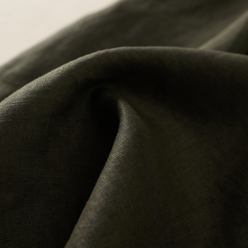 Chất liệu:  100% Linen. Được làm từ cây lanh, loài thực vật cần rất ít nước tưới và giúp thúc đẩy đất đai màu mỡ cũng như đa dạng sinh học. Sợi vải rất thoáng