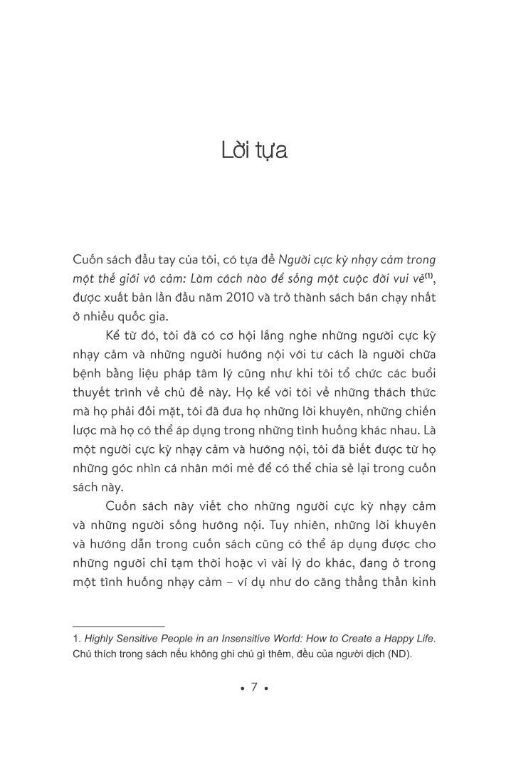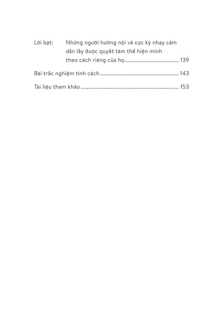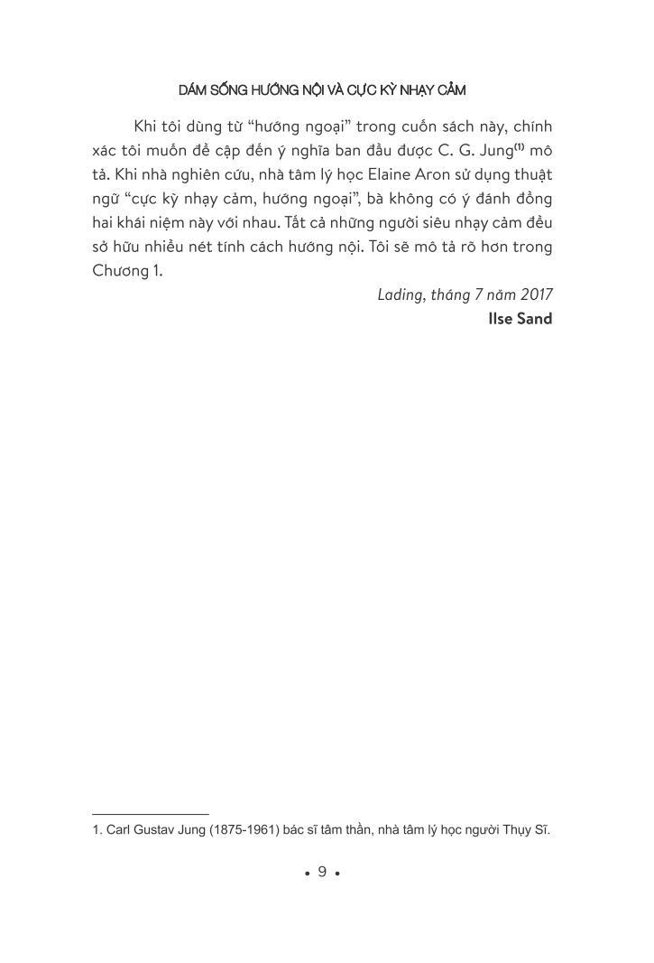 Dám sống hướng nội và cực kỳ nhạy cảm là tác phẩm đúc kết nhiều năm tháng làm mục sư và chuyên gia tư vấn tâm lý của Ilse Sand. Nhưng trên hết, nó là trải nghiệm của một người hướng nội đã thoát ra mặc cảm để tìm thấy niềm vui sống và phát huy hết những năng lực mà tính cách hướng nội của mình mang lại.
