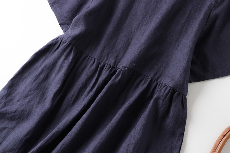 Váy linen suông đẹp cổ chữ v, 2 túi hông váy phù hợp công sở du lịch, mặc nhóm