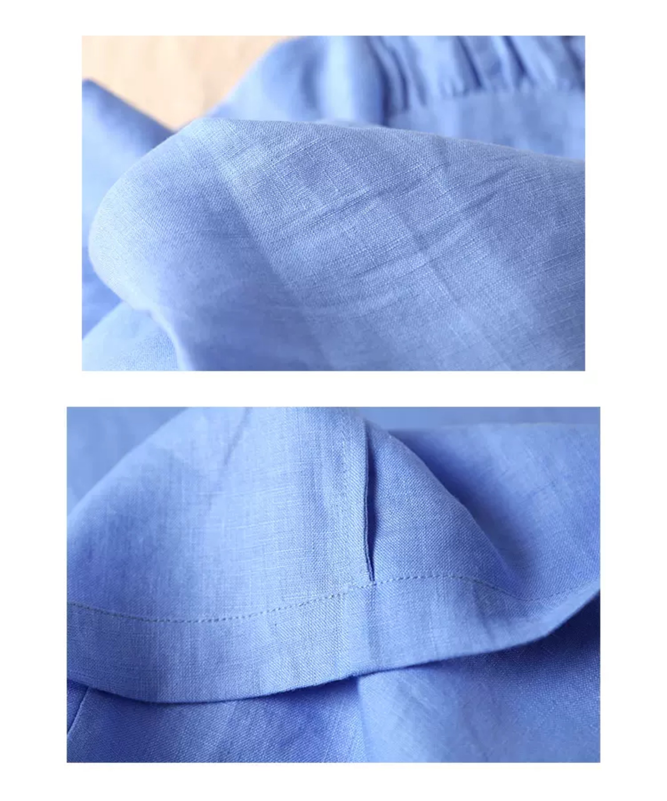 Chất liệu: 100% Linen. Được làm từ cây lanh, loài thực vật cần rất ít nước tưới và giúp thúc đẩy đất đai màu mỡ cũng như đa dạng sinh học. Sợi vải rất thoáng