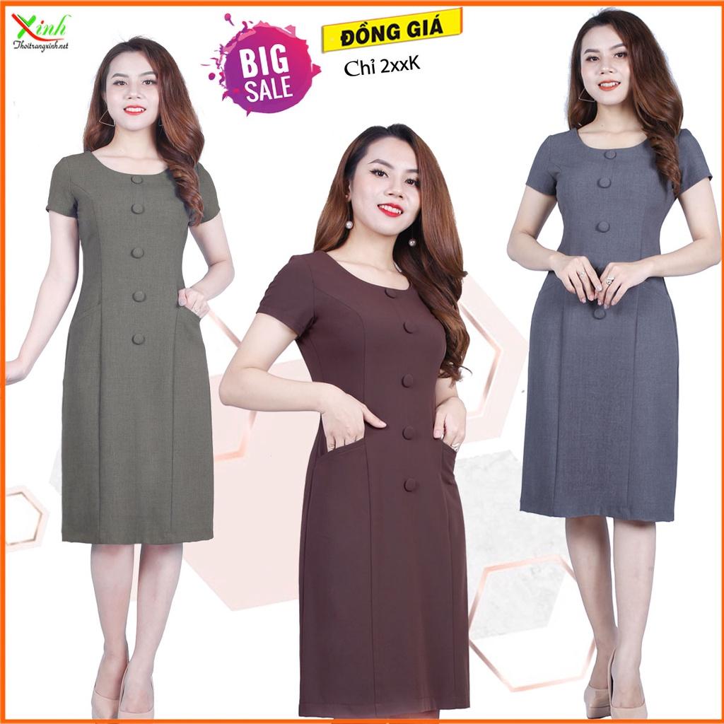 ✨Đầm Suông Phối Nút Che Bụng Gọn Eo ThoiTrangXinh DL508