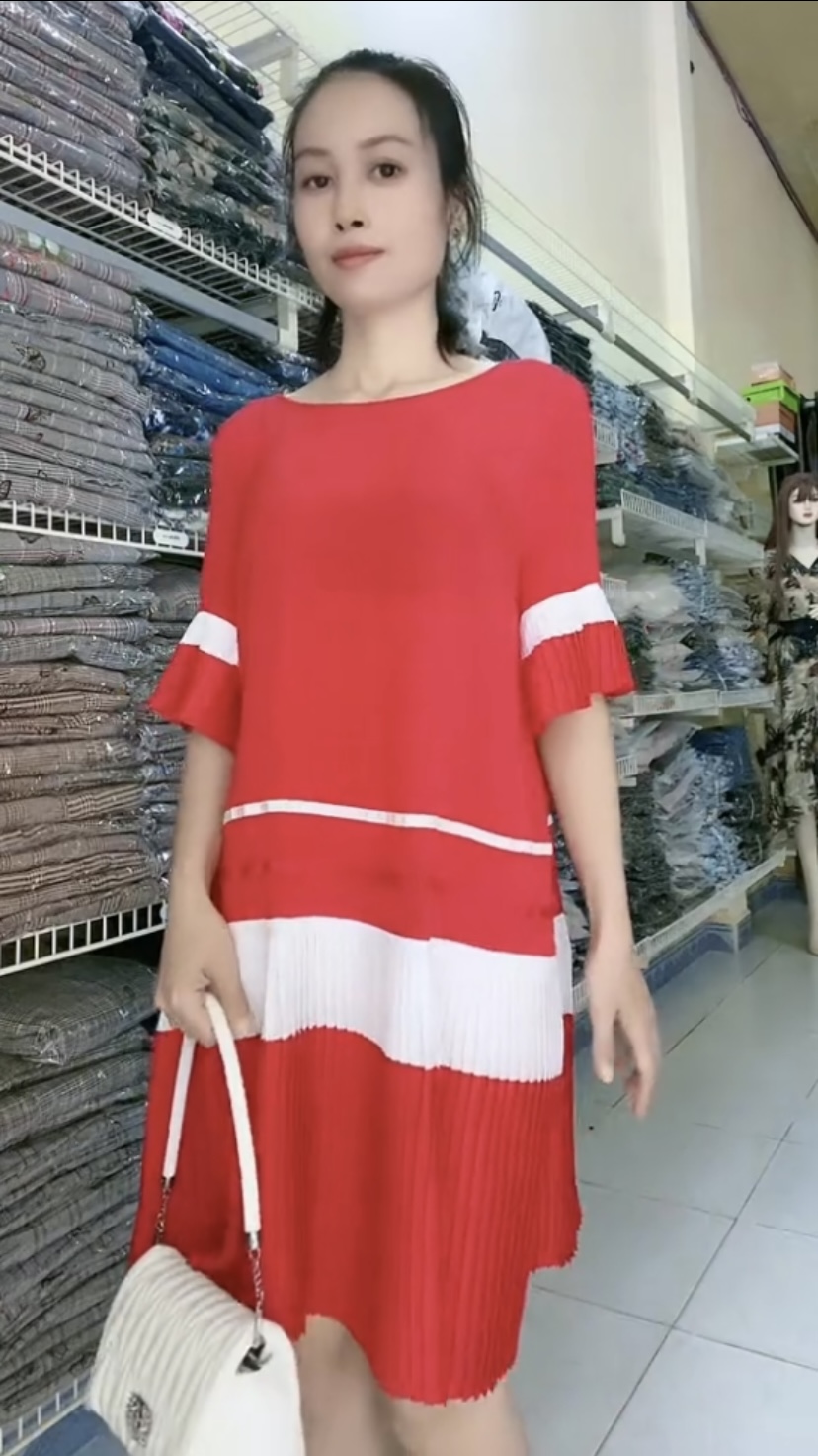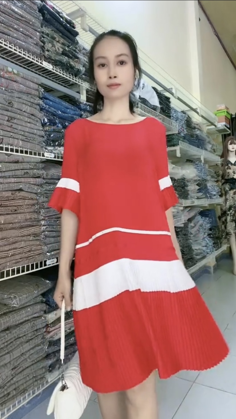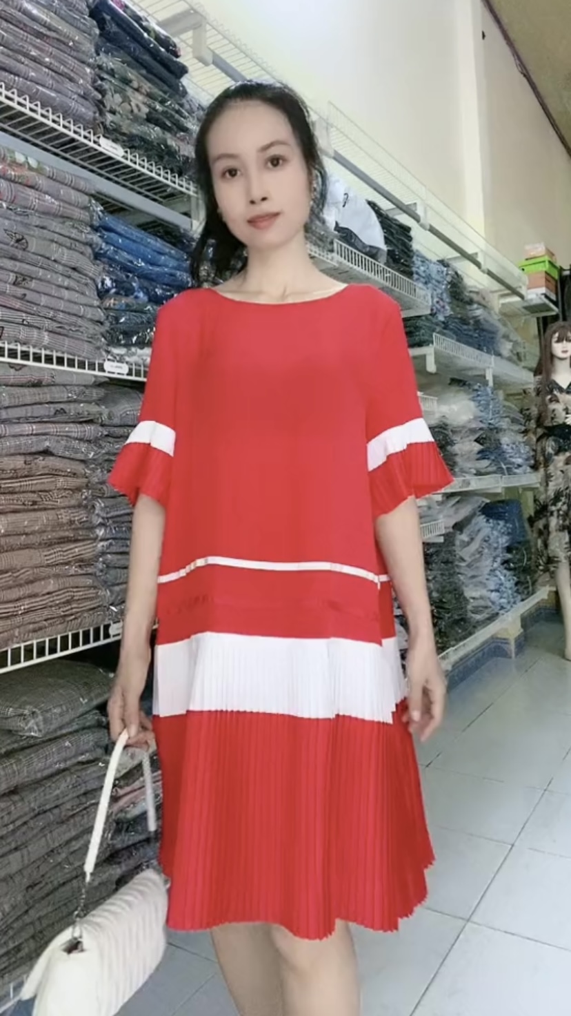 Mua tại TiktokĐầm suông xếp ly Mã: DLSG014 Màu: Đỏ + Trắng Chất liệu: Polyester Số đo vòng1/vòng2(cm): 103 giãn nhẹ/105