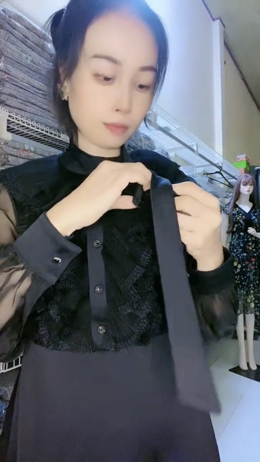 Đầm xếp ly voan lụa phối ren cao cấp Mã: DLBG010 Màu: Đen Chất liệu: Voan lụa, ren thêu loại 1 bền chắc Số đo vòng1/vòng2(cm): 80/70