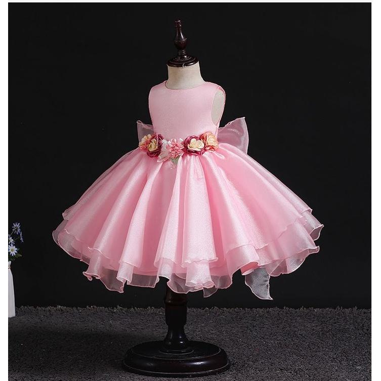 ✨Đầm voan công chúa cho bé gái màu hồng trắng đính hoa nổi mặc tết noel dự tiệc cưới hàng Quảng Châu cao cấp