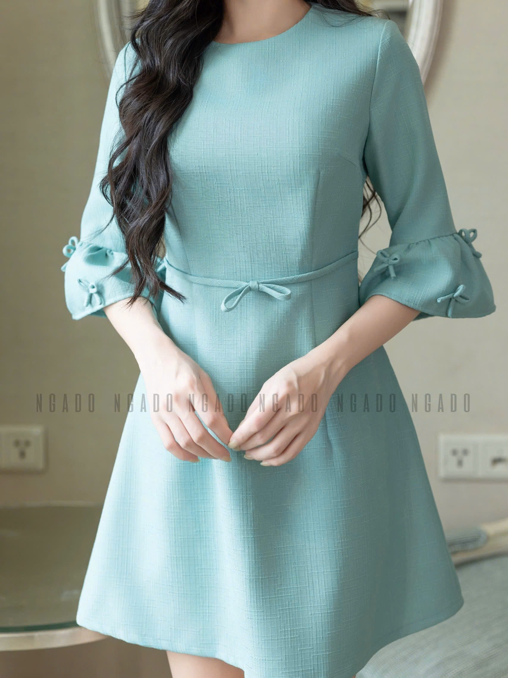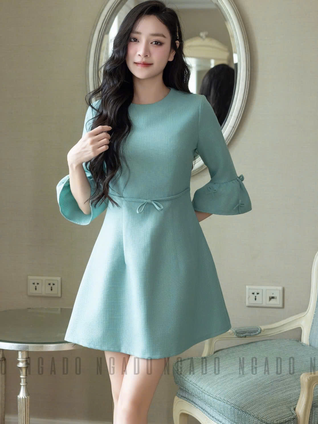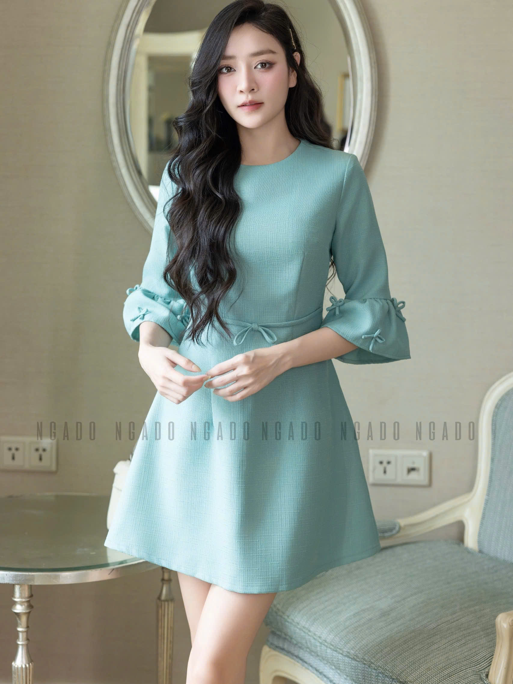 ✨Đầm xanh mint tay chuông NGADO , đầm kiểu Nữ , đầm công sở , dự tiệc