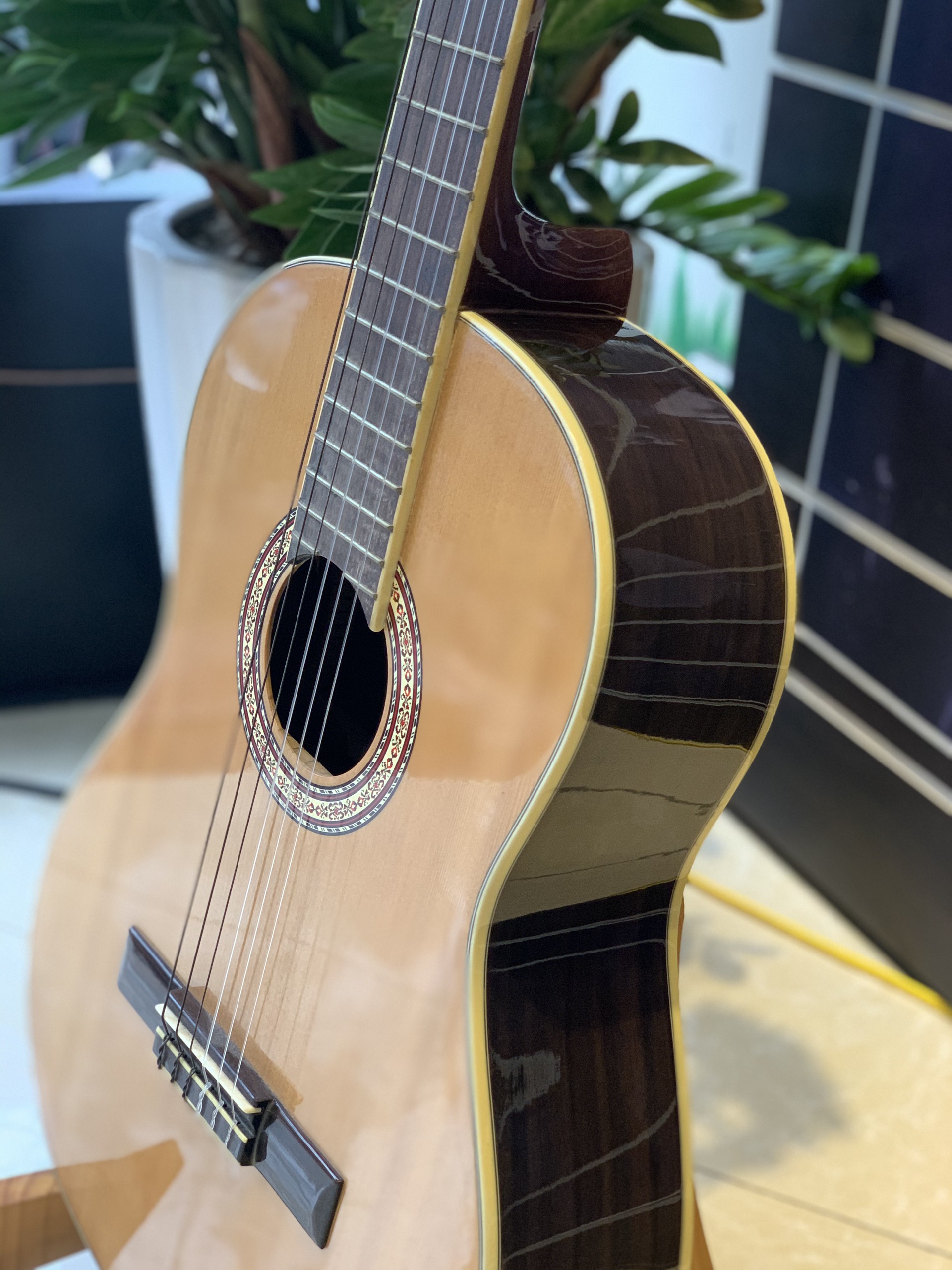 Shop Duy Guitar - đàn guitar classic chơi nhạc cổ điển Mã: DC120J Mặt: gỗ thông Eo + lưng: hồng đào chất lượng cao Cần: gỗ thao lao, có ty chống cong cần Mặt phím:
