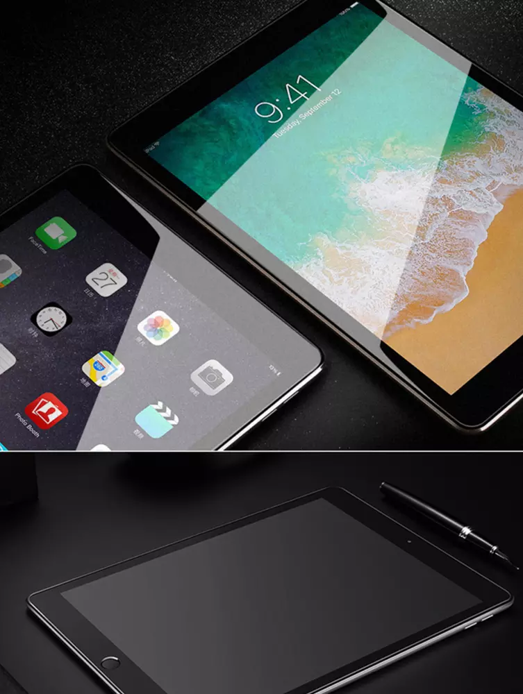 Miếng dán kính cường lực, chống vỡ màn hình cho iPad Pro 10.5. Bảo vệ màn hình một cách hoàn hảo với độ cứng lên tới 9H (gấp 20 lần tấm dán film sử dụng trong