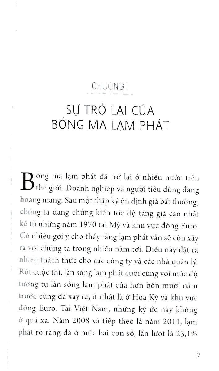 Lạm phát không thể kiểm soát có phải một điều bình thường mới? - Lạm phát đã trở lại và sẽ còn tiếp diễn. Đối với các công ty Việt Nam, điều này có nghĩa là thế giới kinh doanh của họ đã thay đổi về cơ bản. Cuốn sách Đánh bại lạm phát – linh hoạt, cụ thể, hiệu quả nhìn vào lạm phát từ các góc độ khác nhau. Nó đề xuất các biện pháp và chiến lược về cách các doanh nghiệp có thể đối phó và quản lý lạm phát để đảm bảo cho sự tồn tại của họ. Đối với doanh nghiệp và người tiêu dùng Việt Nam, vấn đề không phải là loại bỏ lạm phát mà là đối phó với lạm phát theo cách ngăn chặn tổn thất ở mức ít nhất có thể. Điều này không chỉ bao gồm việc quản lý giá mà còn bao gồm các hoạt động bán hàng, tài chính, mua hàng, quản lý chi phí, số hóa và đổi mới. Nó cũng bao gồm sự thay đổi văn hóa doanh nghiệp, nếu được kiểm soát nhanh chóng và thành công, họ sẽ có cơ hội tốt để đánh bại lạm phát và từ đó đảm bảo sự tồn tại của công ty.