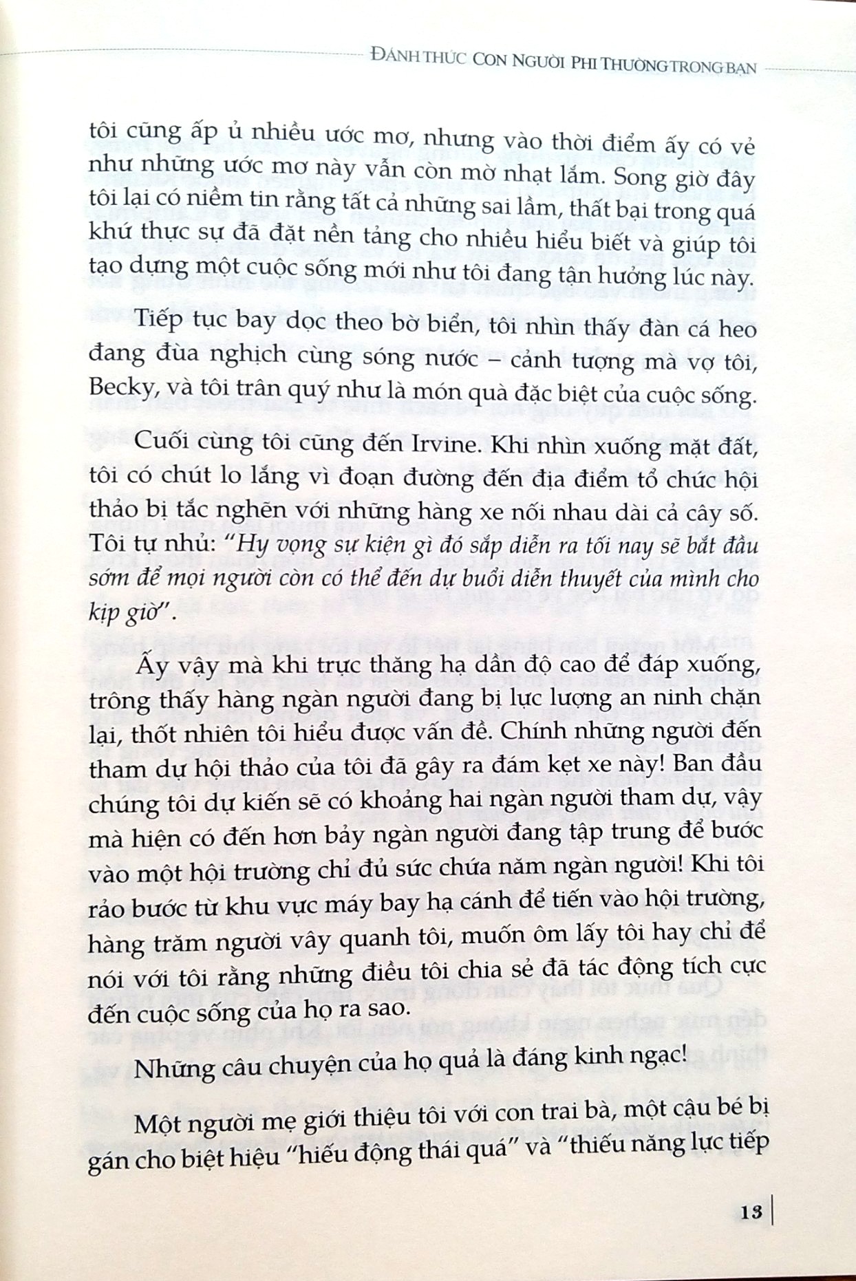 Đem tất cả tâm huyết và khát khao giúp người khác thay đổi, Anthony Robbins chia sẻ tất cả những gì là bí quyết thành công của mình trong cuốn sách “Đánh thức con người phi thường trong bạn”. Ông nói: “Tôi thực sự tin tưởng trong mỗi chúng ta có một con người phi thường đang say ngủ. Tôi viết quyển sách này chỉ với một nguyện vọng, mong sao nó sẽ trở thành một tiếng gọi lay tỉnh, thách thức những ai vẫn còn nhiệt tâm với cuộc sống, giúp họ khai thác nguồn sức mạnh mà tạo hóa đã ban tặng”.