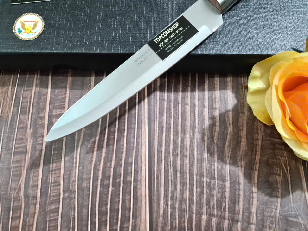 Cán dao làm từ gỗ c ẩmlai sang trọng, tay cầm cong
