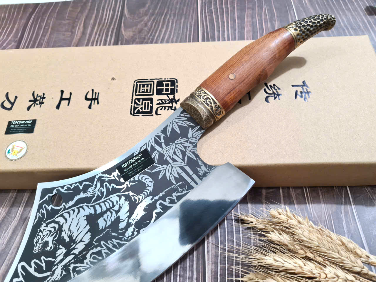 Dao Phúc Sen Chặt Xương Cán Cẩm Khâu Đồng - Kích thước: lưỡi: 24cm, cán: 13cm, rộng: 10cm, dầy: 0,5, trọng lượng: 700g - 900g - Chức năng: sử dụng chuyên chặt xương ống, xưởng