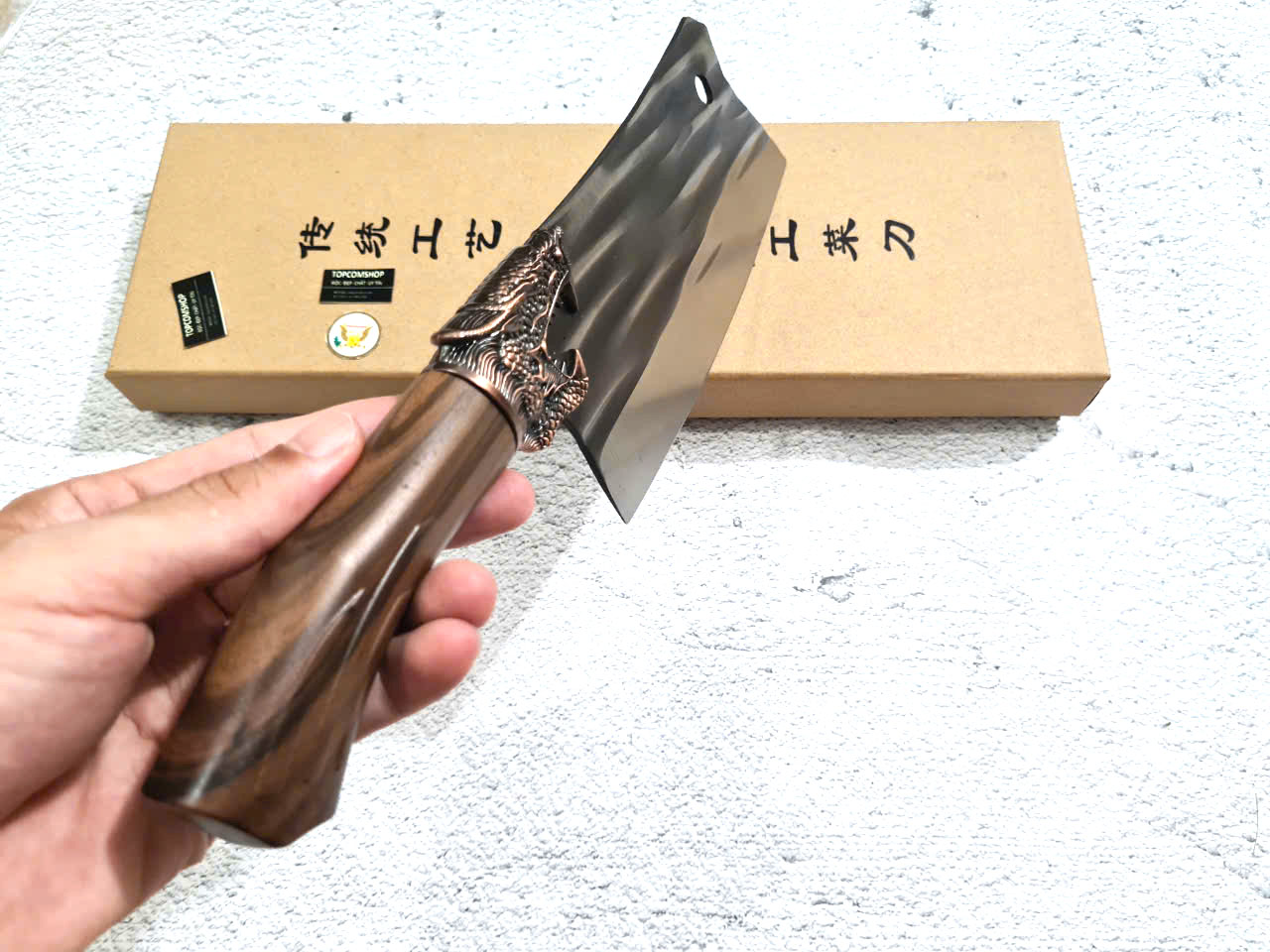 THÔNG TIN SẢN PHẨM ều dài TỔNG: 31cm Chiều dài lưỡi: 18.5cm Chiều rộng lưỡi: 8cm, Độ dày lưỡi: 2.7mm Trọng lượng: 0,35kg chất liệu lưỡi : 4Cr13MOV (thép 4 crom 13 molypden vanadi)