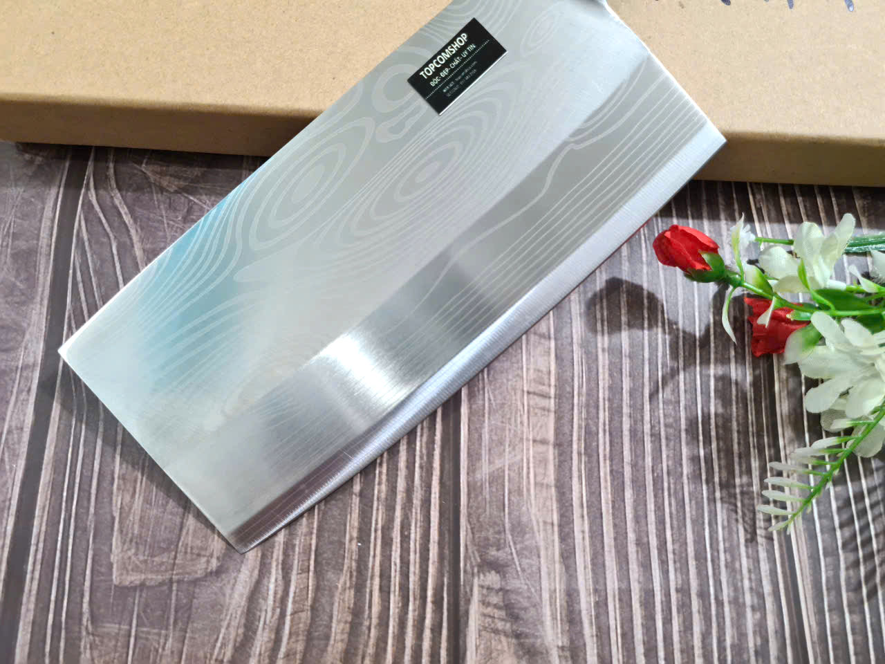 #- Chức năng: Chặt xương ống, chân giò,xương bò - Kích thước: Lưỡi: 24cm, cán: 12cm, rộng: 9,5cm, dầy: 4ly,trọng lượng: 800g