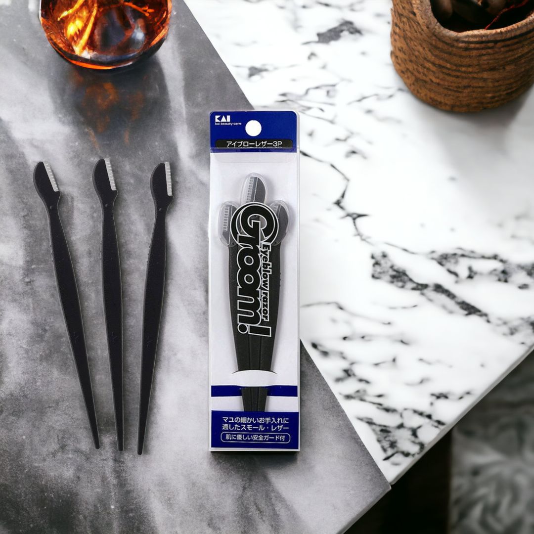 ✨Dao Cạo Lông Mày Kai Groom 38531 - HC1161 Màu Đen (Set 3 Cây)