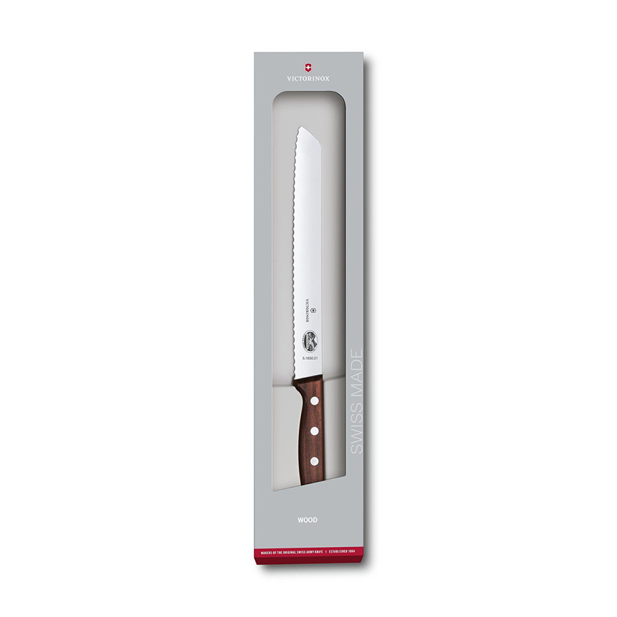 Dao bánh mì thanh lịch với tay cầm bằng gỗ Một con dao cắt bánh mì tốt quan trọng như thế nào? Hoặc một câu hỏi hay hơn: Bạn sẽ cắt bao nhiêu ổ bánh mì trong đời? Rất có thể đó sẽ là một con số khá cao, vì vậy hãy sở hữu cho mình một con dao bánh mì thật sự chất lượng từ Victorinox. Với lưỡi dao lượn sóng và tay cầm tiện dụng đảm bảo hoạt động trơn tru và chính xác mọi lúc.