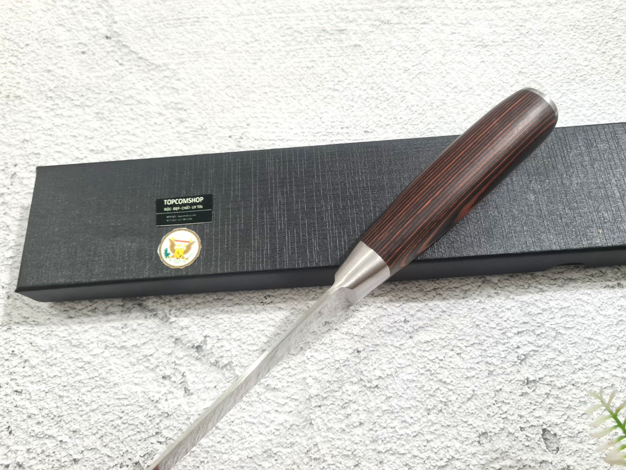 Dao lọc 15 cán ốp cẩm - DL15OCD - Kích thước: lưỡi: 18cm, cán: 12cm, rộng: 3.5cm, dầy: 1.5ly, trọng lượng: 200g - Chức năng: sử dụng chuyên thái lọc thịt ,cá, rau củ và