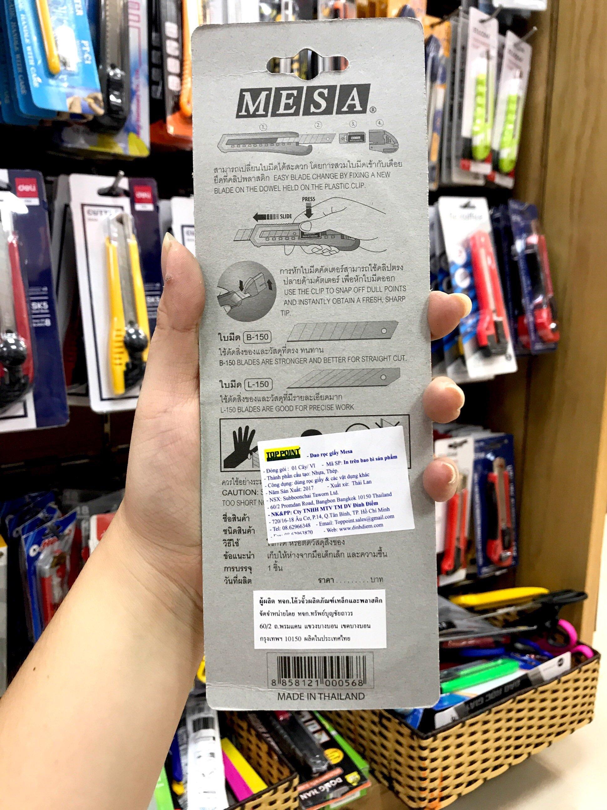 Dao Rọc Giấy Mesa ST-10 Dao rọc giấy mesa ST-10 được làm từ chất liệu thép cao cấp, không gỉ, sắc bén, độ bền cao. Cán dao được bọc kim loại cứng cáp, chịu được